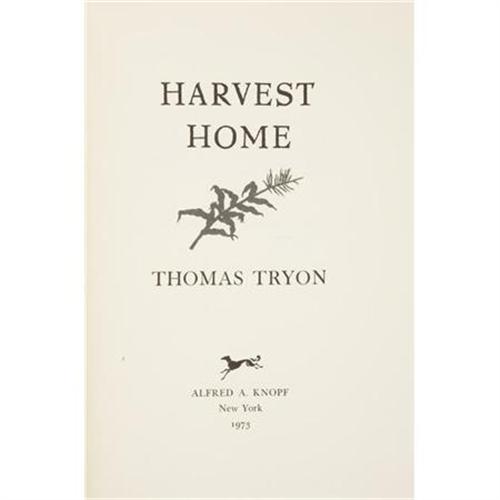 <B>Thomas Tryon. </B></I><B><I>Harvest Home</B></I></B></I><B>.</B></I> New York: Alfred A. Knopf, 1973.<BR> <BR>First edition. Octavo. 401 pages.<BR><BR>Publisher's black cloth with gold titles on the spine and front board. Contents tight and bright. Dust jacket with minimal shelf wear. A fine copy. <I>From the Robert and Diane Yaspan Collection.</B></I><BR><BR><b>Shipping:</b> Books & Catalogs (<a target="_blank" href="http://www.heritageauctions.com/common/shipping.php">view shipping information</a>)