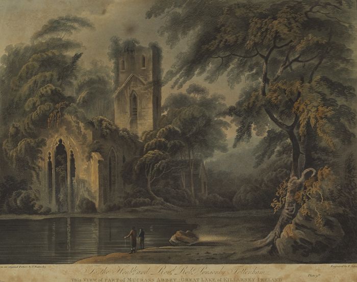 Thomas Walmsley (1763-1806) - VIEW ON THE RIVER SHEENE NEAR KENMARE, VIEW ON THE RIVER KENMARE NEAR KILLARNEY and VIEW OF MUCRASS ABBEY, GREAT LAKE OF KILLARNEY (SET OF THREE)