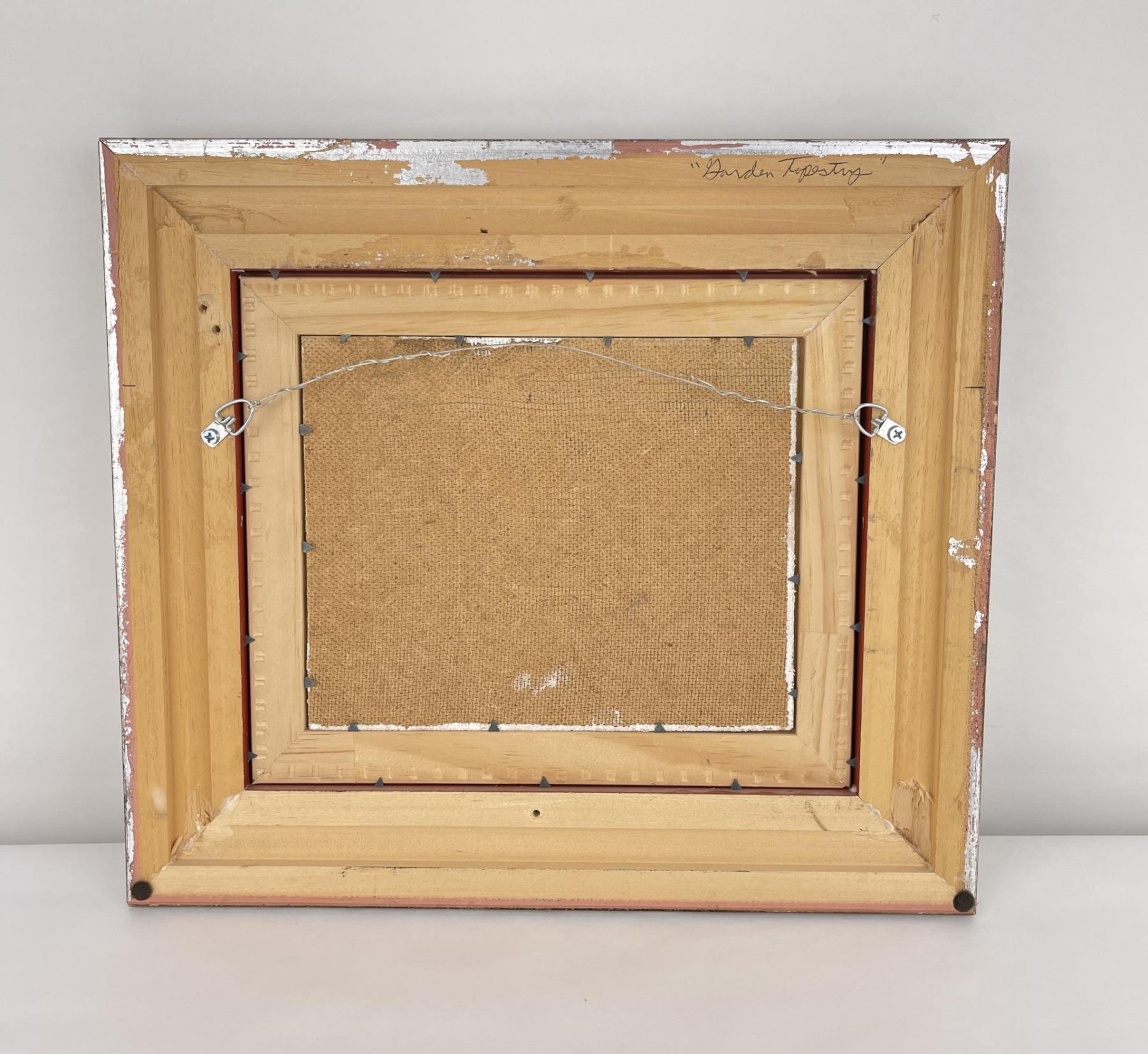 Title is Garden Tapestry. 15 1/2" by 17 1/2" framed. Thomas A. de Decker (Born 1951) is active/lives in Wyoming, Colorado, Wisconsin. Thomas de Decker is known for Landscape, Indian figure-camps. A traditional painter of the peaceful lifestyle of the western Indian before 1880, he was born in 1951, in Appleton, Wisconsin and from 1975, lived in Redmond, Washington. Before attending college, he was primarily interested in archaeology and anthropology, but was inspired by a student art show at Brigham Young University where he was enrolled. After college, he traveled throughout the West and then settled in Washington State because of his interest in the Plains tribes. He paints western landscapes, and landscapes in the Hudson River style. He also paints scenes of Native American life and customs.