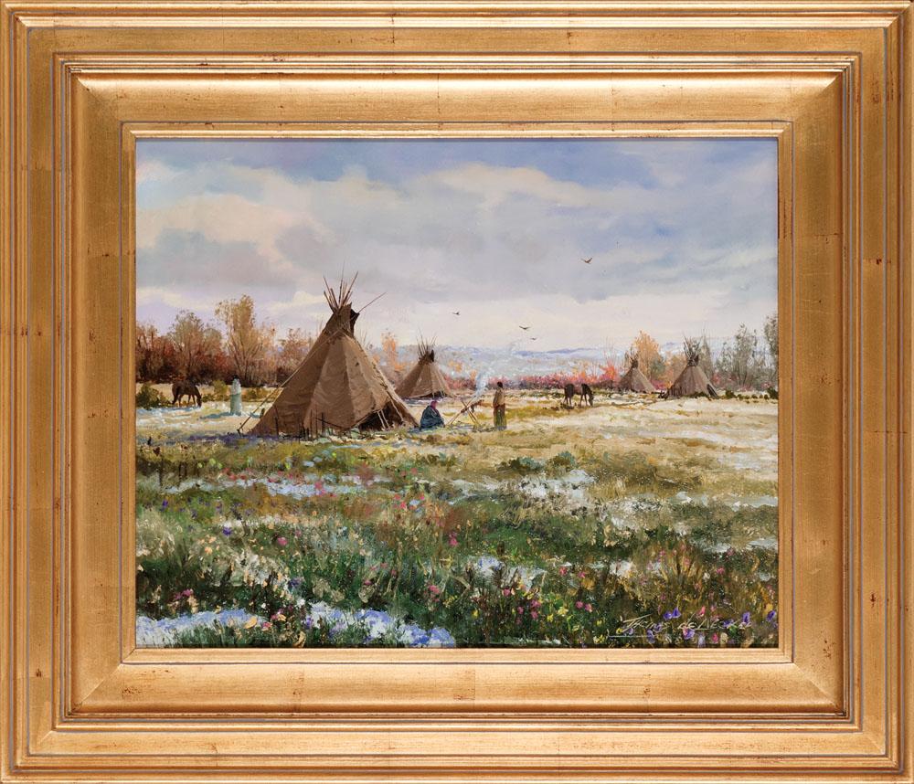 Native American Campsite 16” x 20” Oil on board Signed lower right