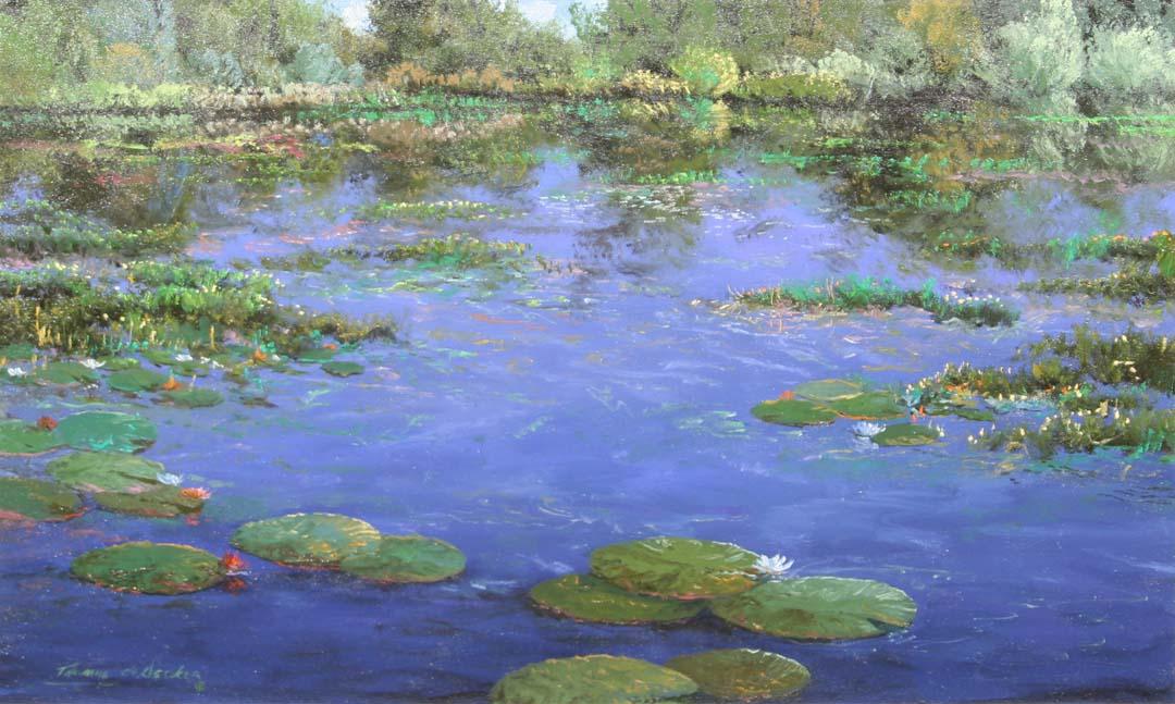 Thomas deDecker (b.1951). Pond Reflections. 24" x 36" oil on canvas. Signed lower left & verso. (est $3,500-5,500). For condition reports please visit: www.auctioninsantafe.com/cr2011.pdf