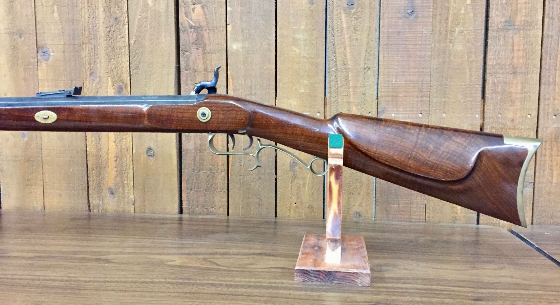 Description: Presented for your bidding pleasure is a Thompson .50 caliber percussion rifle. The black powder rifle has solid brass hardware. The butt plate, trigger guard, and contoured patch box have been inletted and fitted to the Walnut stock. The rifle features adjustable rear and bead front sights. We are selling this as a black powder replica item. No FFL paperwork required on this black powder replica. We will only ship this item to the United States and only where it is legal to do so. Please know your local/state laws before buying. Maker: Thompson Denter Arms. Approx. Age: Fairly new. Size: Barrel measures 29” with an overall length of 45-1/2”. Condition: Good for its age, normal wear expected. Please look closely at the pictures - they are an important part of our description. Shipping: There will be a $15 handling / packaging fee for shipping this lot. The actual cost of postage will be added on top of that.