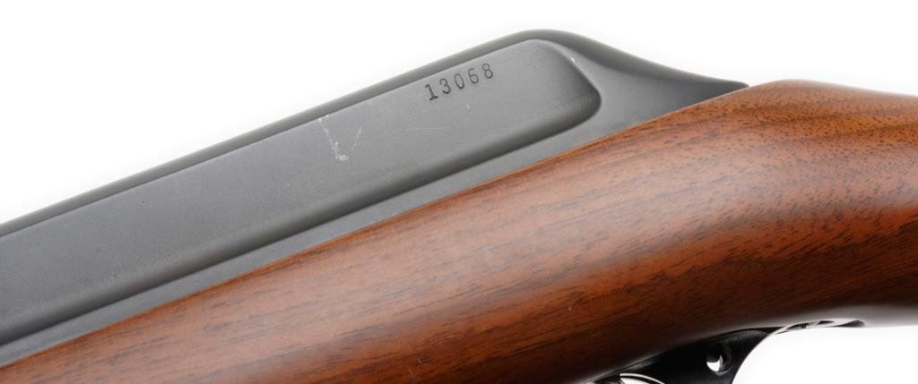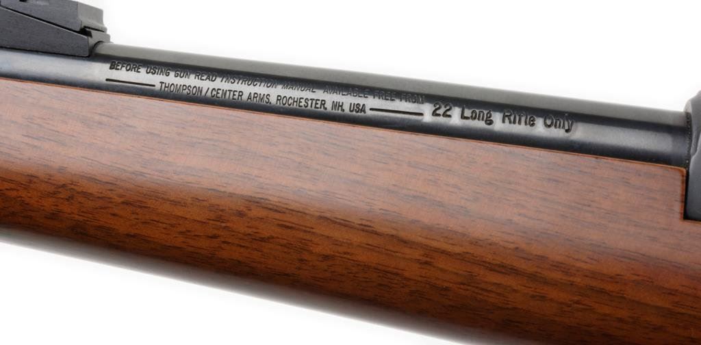 *Thompson Center Arms 22 Classic Model semi-auto magazine rifle, .22LR only caliber, 22” round barrel, S/N 13068, blued finish, wood stock in like new condition. Est.: $250-$500.