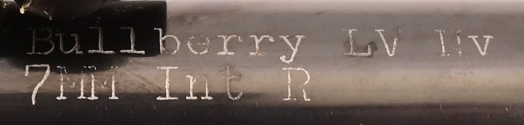 S/N 155506. 7mm International rimmed Bullberry 17" barrel, Burris scope mount w/ rings, extended hammer.