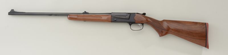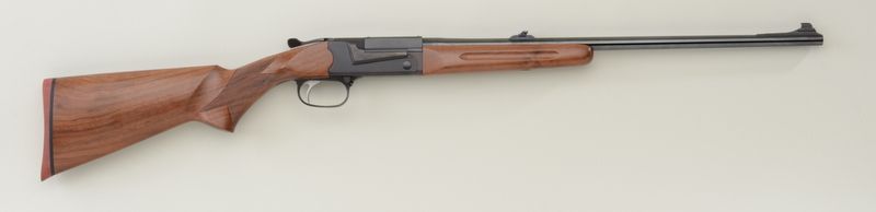 Thompson Center Arms Hunter Model single shot rifle, .308 cal., 23” round barrel, black finish, checkered wood stocks, #11439. This gun is in overall fine to excellent condition showing approx. 99% original finish, crispaction, bore should clean to fine, fine wood stocks; this model discontinued in 1993. Est.: $300-$600.