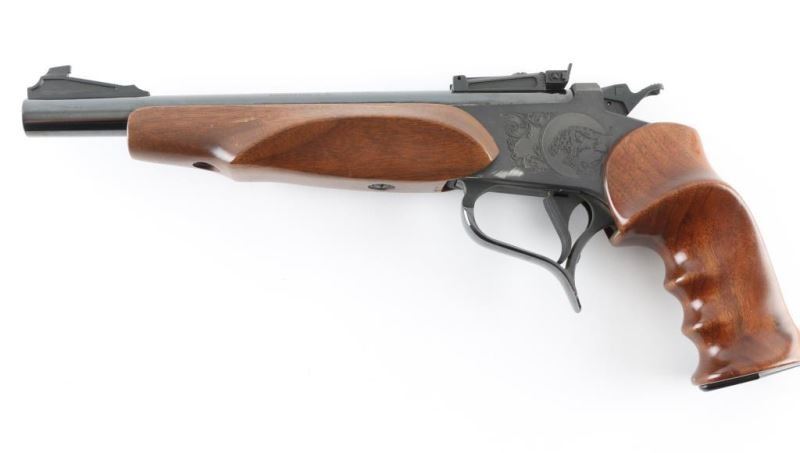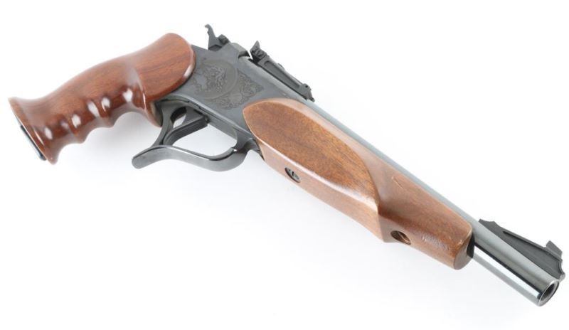 Pistol. Break-top. Single-Shot. SN# 186844 Introduced 1967. Center fire/rimfire selector on hammer. Break action achieved by depressing the triggerguard. Serrated trigger. 10" round barrel. Serrated ramp with dovetailed front sight. Adjustable notch rear sight. Smooth walnut forearm, and finger-grooved grips with right thumb rest. Gloss blue barrel finish. Matte frame with etched Puma scene. Bore appears excellent/bright., a little dirty. Break action is a little stiff. Wood is good , has a few minor scratches/dings. There is a dent in the where it meets the frame when broken open. Metal finish is about 96% with some very minor scratches. There is a scuff mark non the lower left frame. NRA Condition-Very Good. Modern Firearm