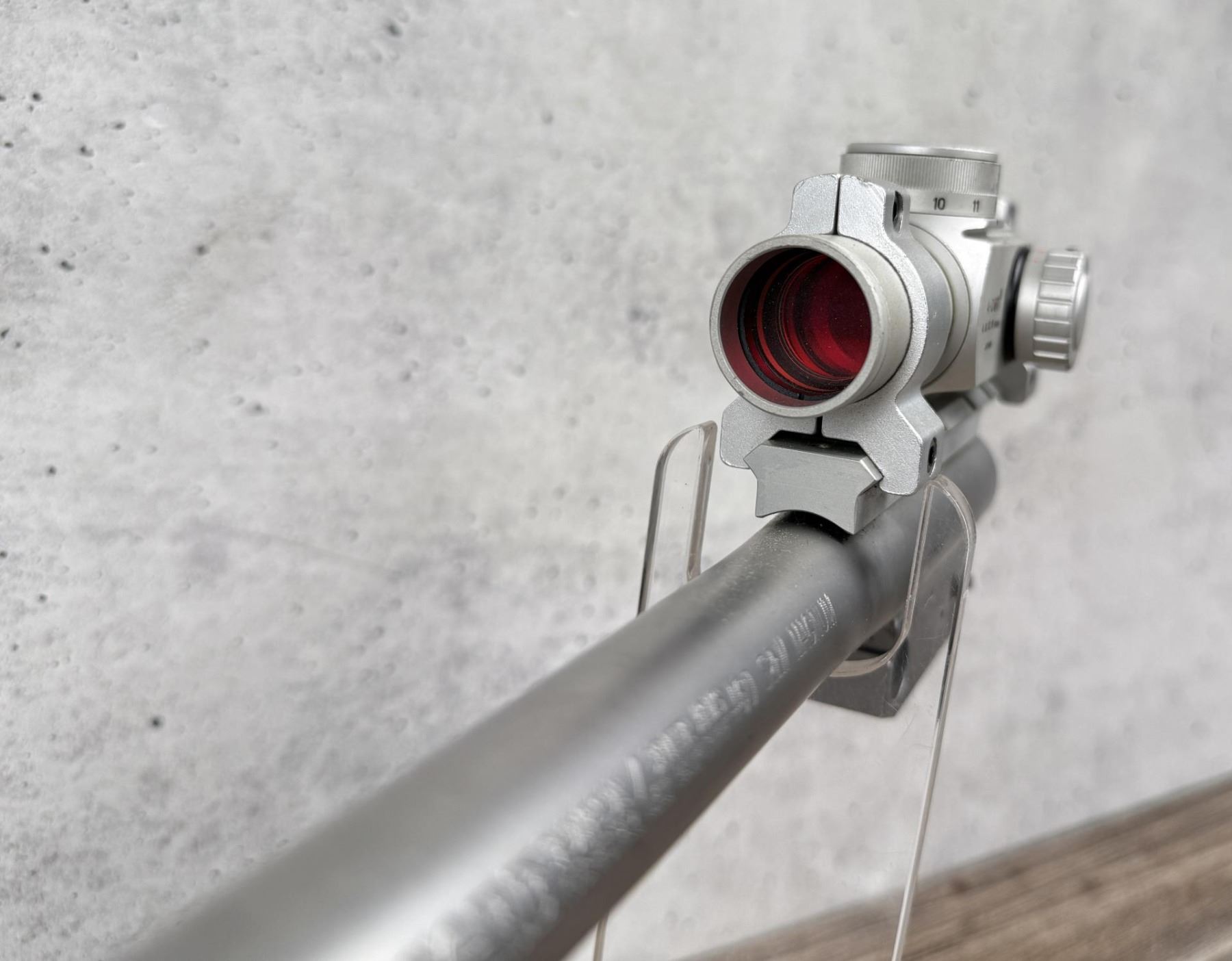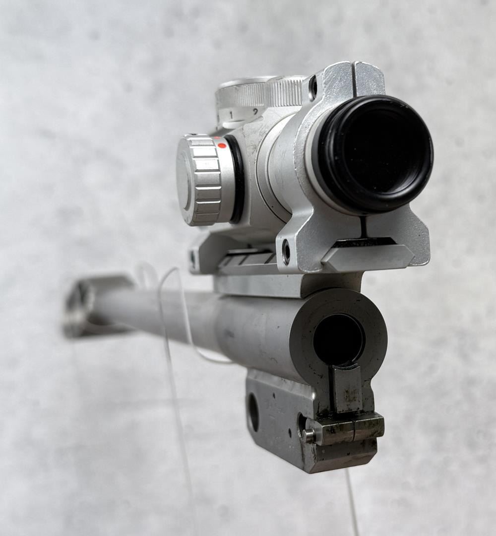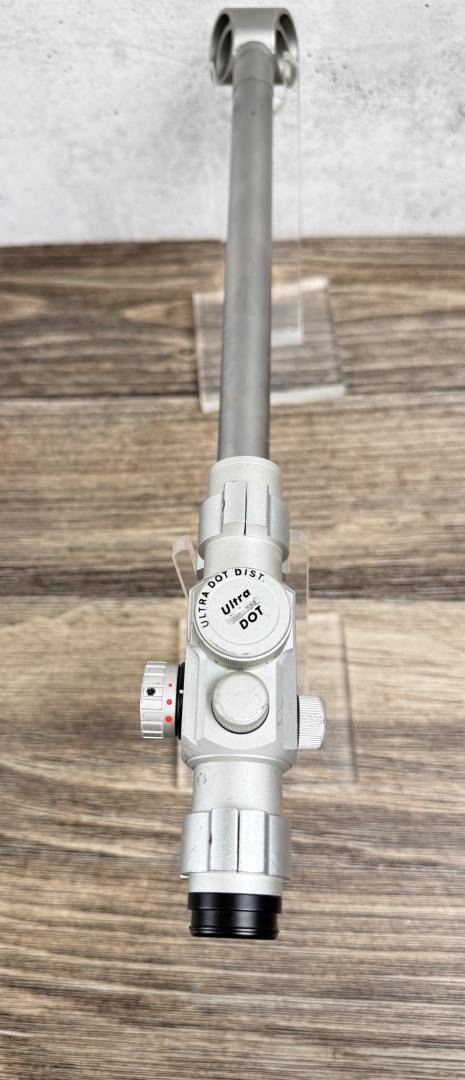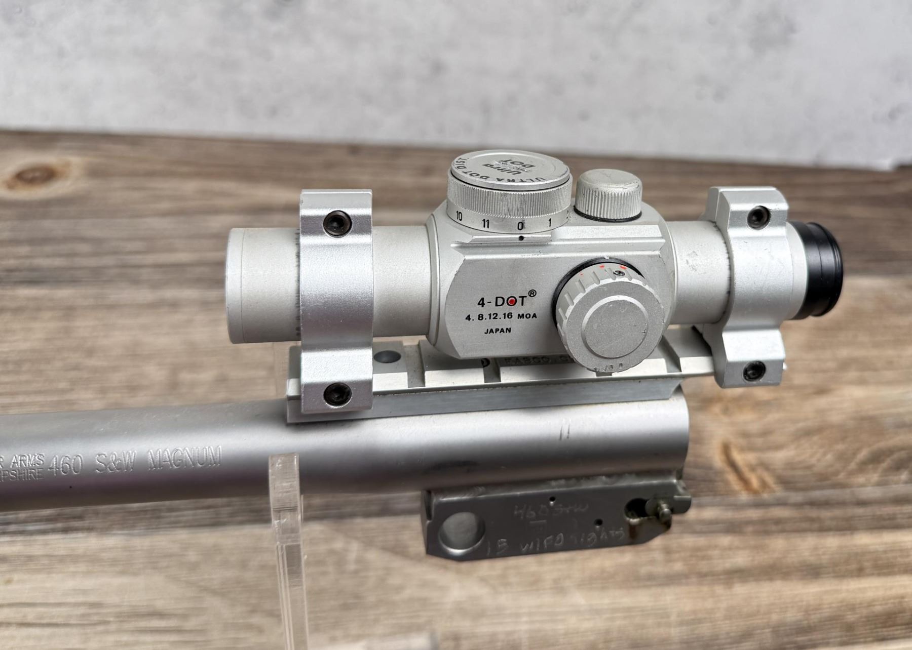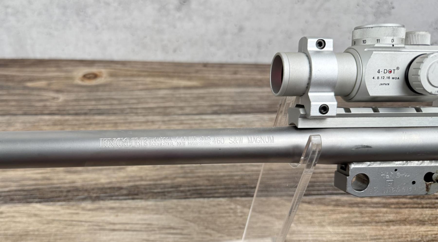 Thompson Custom Shop. 18" long with muzzle brake. Matte Stainless. 4-Dot Scope.