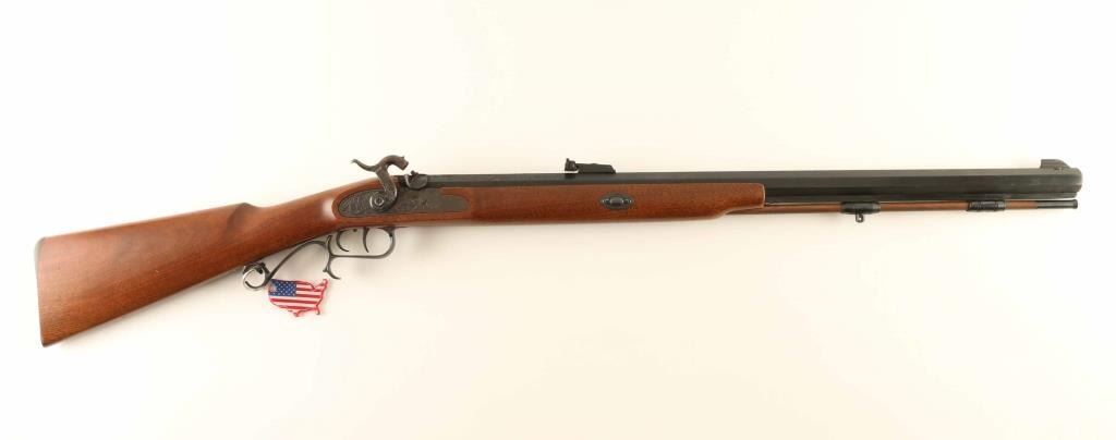 Rife, single-shot, percussion. Blued finish, with one-piece wooden stock. 27" barrel with adjustable rear sights. Barrel has been drilled/tapped for scope mount. There is rust/pitting on the lower barrel, hammer, and lock plate. Wood is good shape, except some dings around the lock plate. Missing rear sling swivel stud. Bore is dark/dirty. Wooden ramrod present. Hammer action is tight. NRA Condition-Good. Antique Firearm.