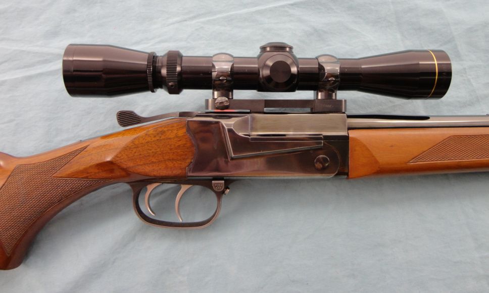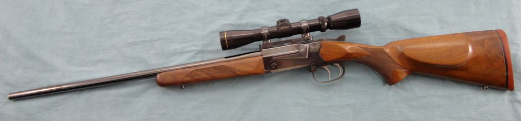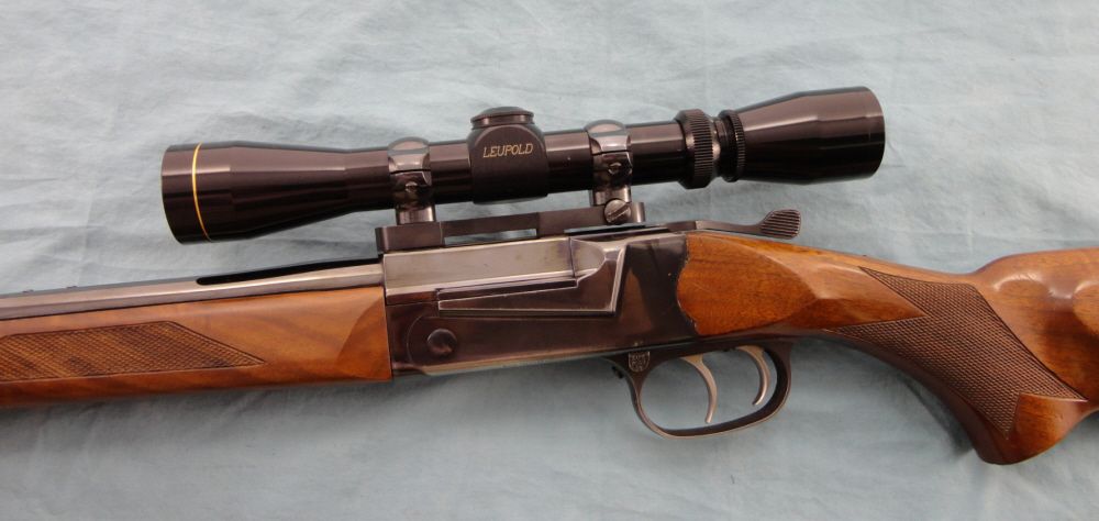 #5515, 243cal. 23" blued bbl. w/bright bore. Gun is fitted w/rare double set hair trigger. Some ware to blue on edges of receiver. Walnut stock in good condition w/scratches & marks from use. Mounted w/a Leupold Vari-XII 2x7 scope. TCR 87's were discontinued in 1993. This is a good example w/good quality glass.