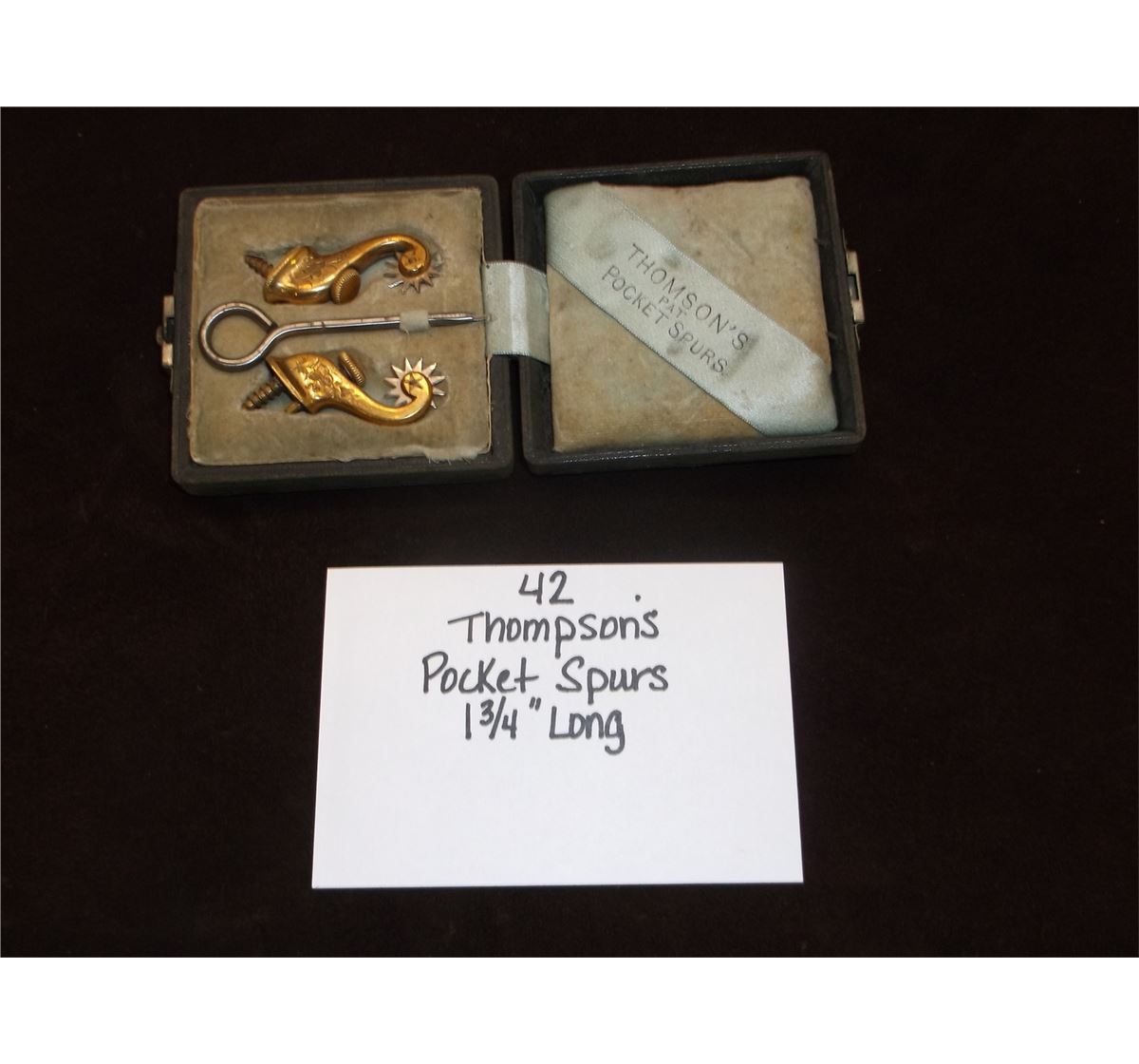 Thomson's Pockets Spurs 1 3/4" Long(EXTREMELY RARE)1800s military officers spurs, complete set, in original box, outstanding condition--likely unused.