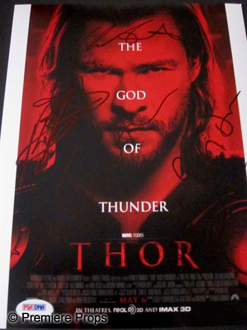Thor Cast Autographed Mini-poster - A high quality print signed by Chris Hemsworth, Tom Hiddleston, Kat Dennings, Colm Feore, Ray Stevenson, Josh Dallas, and Jamie Alexander. Includes PSA/DNA sticker and certification. 8" x 10"