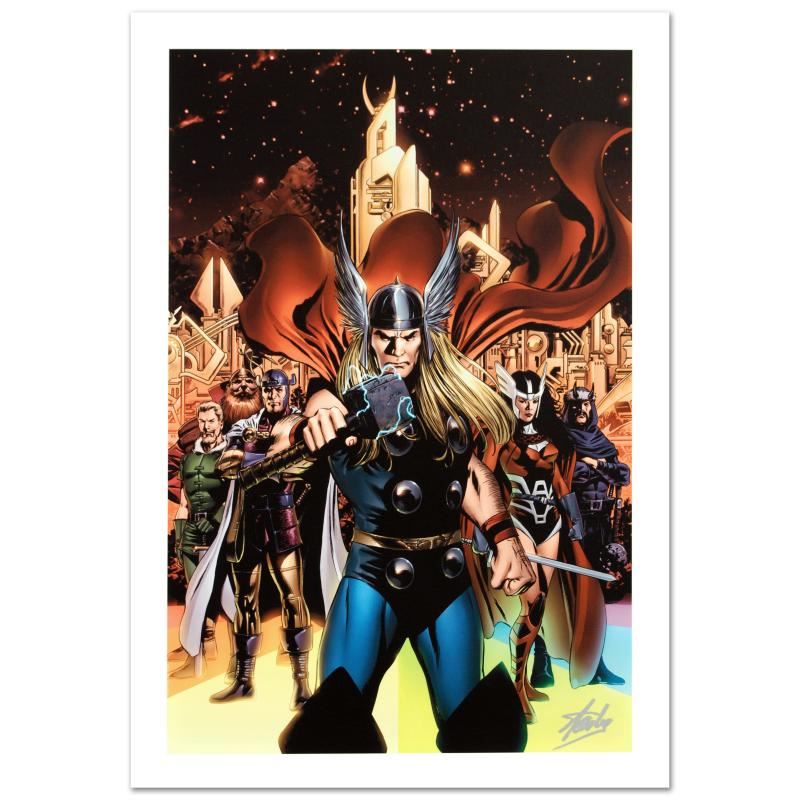 A piece of comic book history, this limited edition, from original art by Steve Epting, depicts a heroic Thor. Steve Epting began working with Marvel Comics in the early 1990s; his first assignment was a six part Avengers series, thereafter he became a full time penciler on the Avengers. More recently Epting has been working on the Fantastic Four as well as Captain America. "Thor #82" is a limited edition giclee on canvas by Steve Epting presented by Marvel Comics, numbered and hand signed by the Great Stan Lee (1922-2018)! Includes Certificate of Authenticity! Measures approx. 18" x 27" (image).