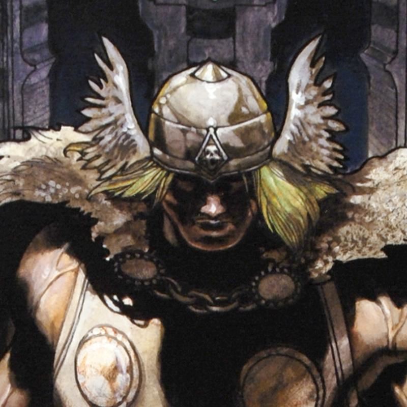 A piece of comic book history, this limited edition, from original art by Simone Bianchi, depicts a mighty Thor. Known for his use of ink wash in his work, Simone Bianchi is an Italian comic book artist famous for his X-Men Unlimited artwork. "Thor: For Asgard #6" is an extremely limited edition giclee on canvas by Simone Bianchi presented by Marvel Comics, hand signed by the great Stan Lee and numbered out of only 10! This piece comes custom framed and ready to hang. Includes Certificate of Authenticity! Measures approx. 25" x 34" (with frame), 18" x 27" (image).