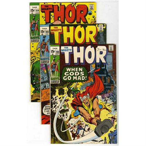 <B>Thor Group (Marvel, 1970-71) Condition: Average VF.</B></I> Contains #180 (Neal Adams art), 183, 184 (2 copies), 185, 187, 189, 190, and 191. Approximate Overstreet value for group = $150. <I> From the Madison Monk Collection.</B></I><BR><BR><b>Shipping:</b> Comics - Unslabbed (<a target="_blank" href="http://www.heritageauctions.com/common/shipping.php">view shipping information</a>)