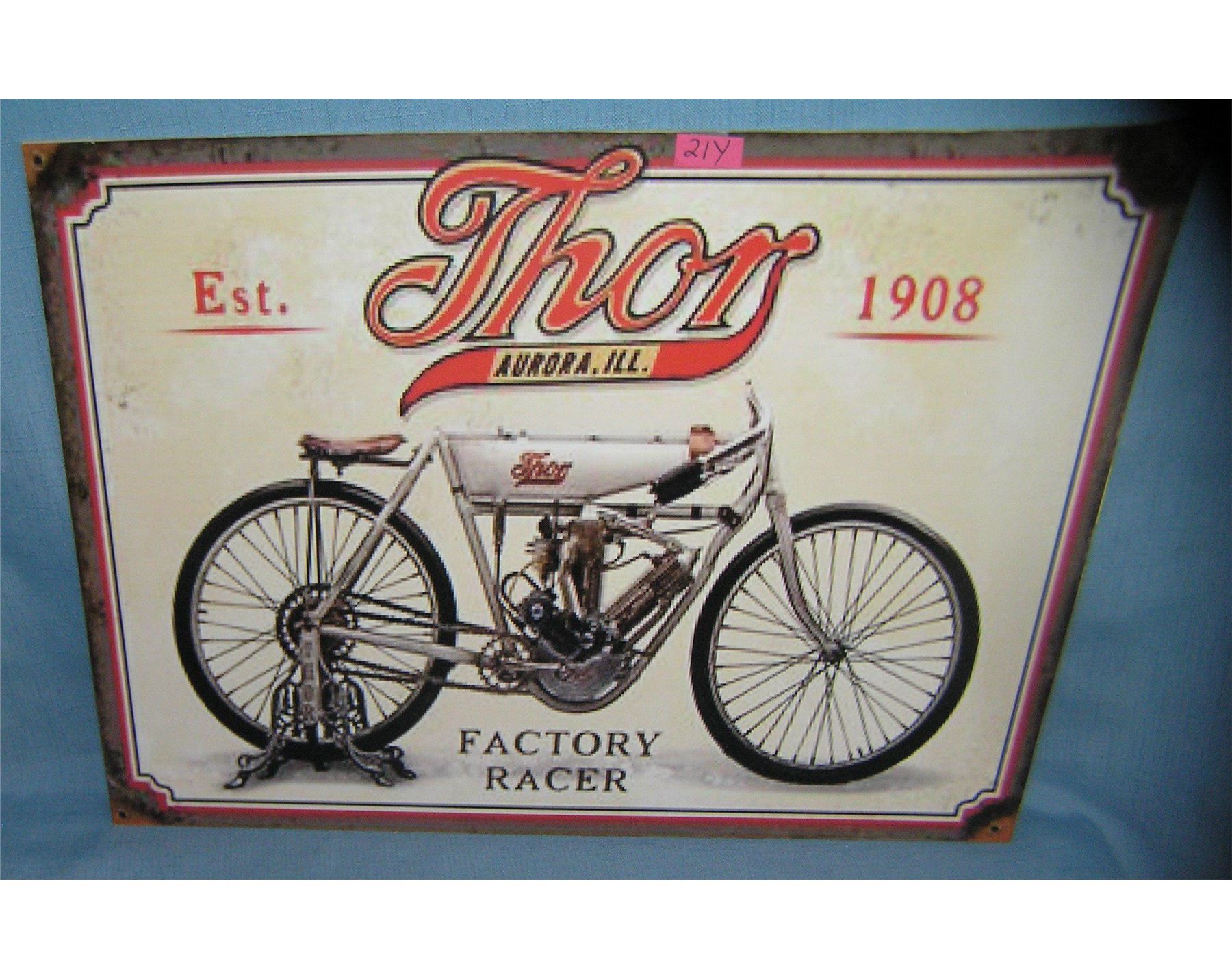 Thor Motorcycles retro advertising sign 12 inches by 16 inches est. value $40.00-$50.00