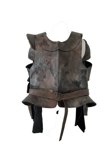 Thor: Ragnarok (2017) - Guard's breastplate. Custom made, attached to a black tunic. Made of foam to look like metal. Also designed with fabric to look like chainmail. Faux armor sewn down both arms.