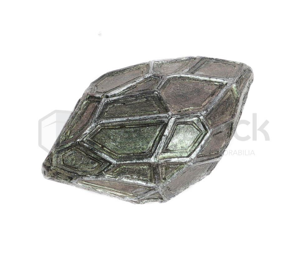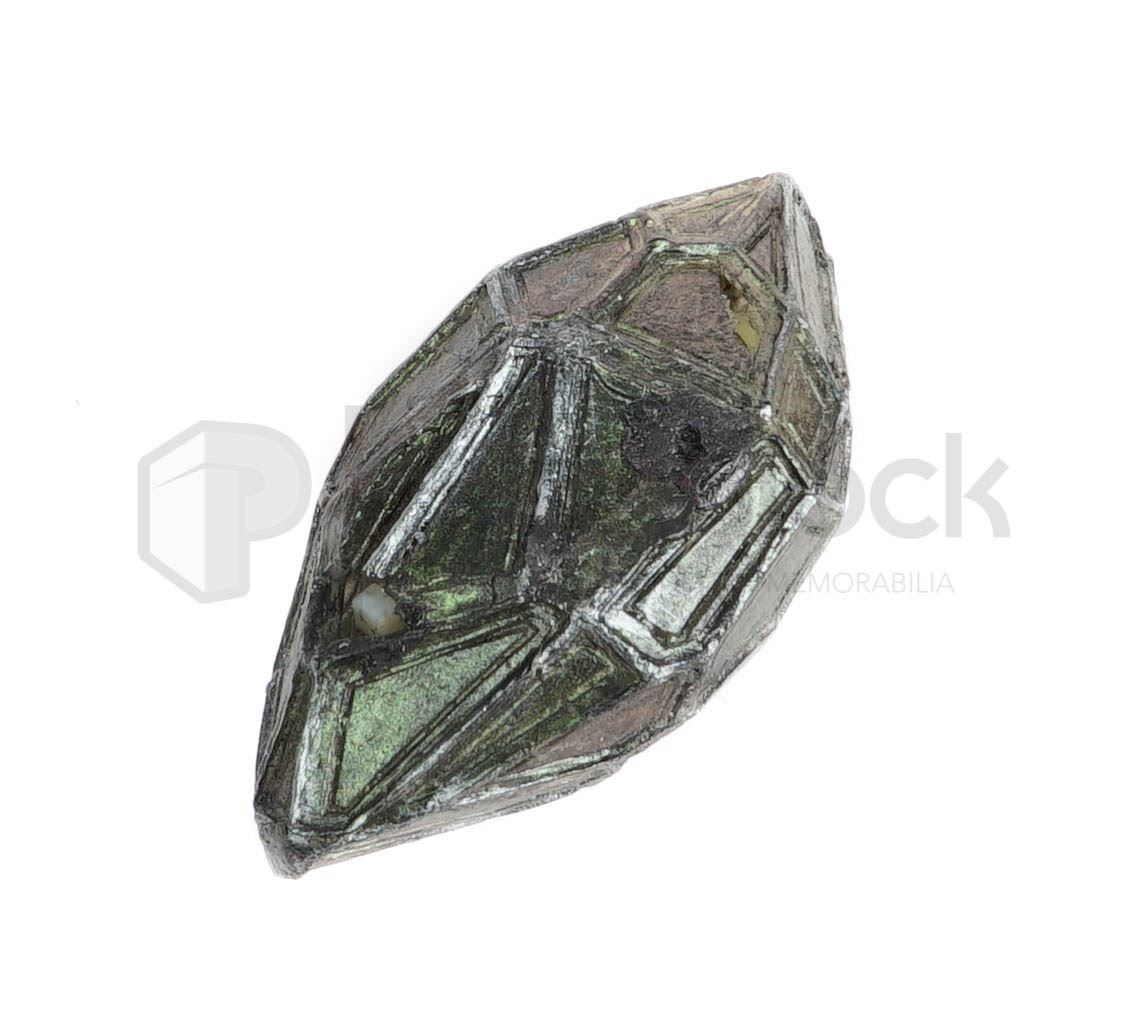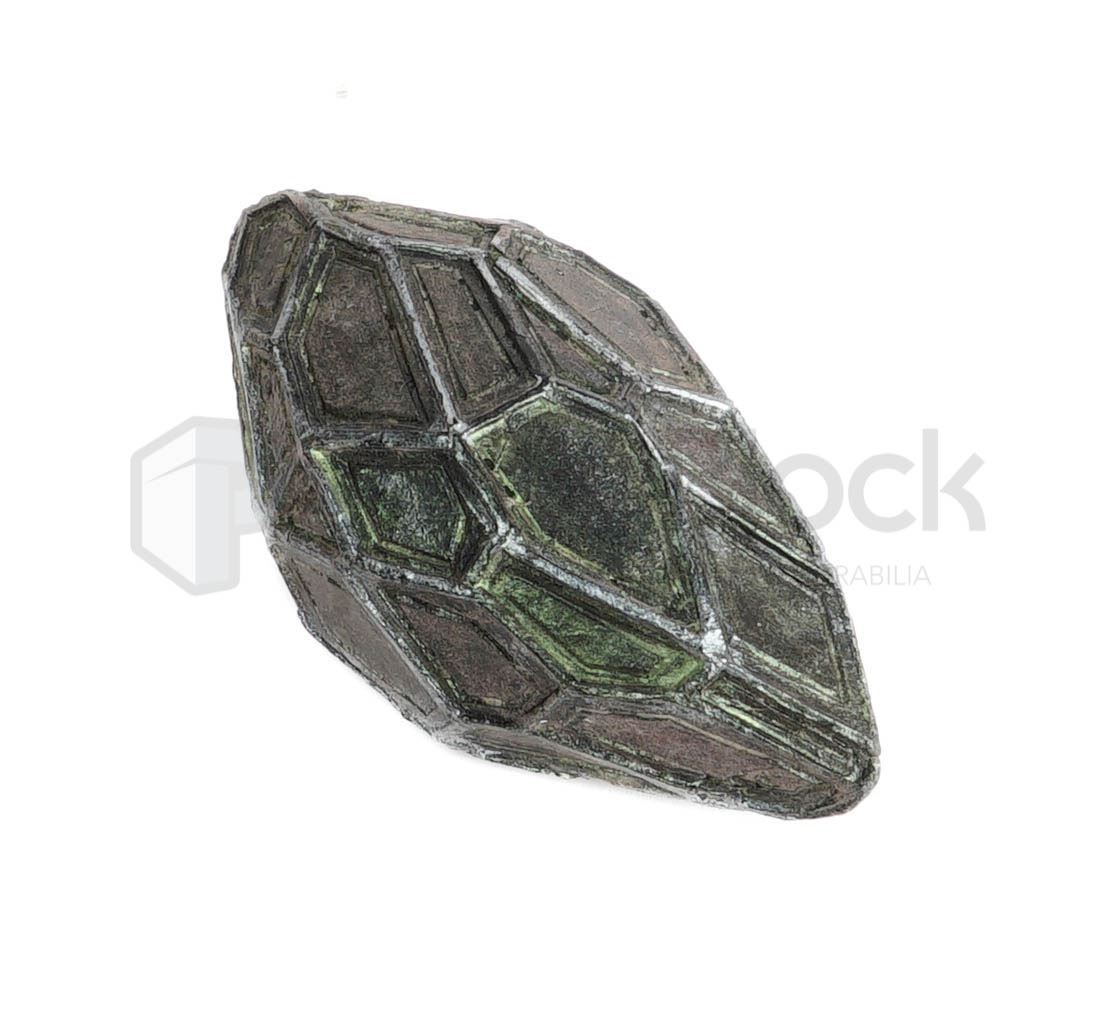 Either stone, or "Reality Stone" used in the production of the superhero sequel Thor: The Dark World. As a main piece of the plot, this infinity stone was featured in the scene where Jane, actress Natalie Portman reaches inside two large stones to retrieve an object of immense power. This item was CGI'd over in the final cut of the film but can be seen when she is reaching for the stone. Made of resin, this piece is hollow and features a bright red LED with diffusion paper inside so that when activates it emits an iridescent red color. The main color of the piece is green, and it features a small hold on the back with white switch for the electronics. This item measures 2" x 1" and remains in excellent, production used condition.