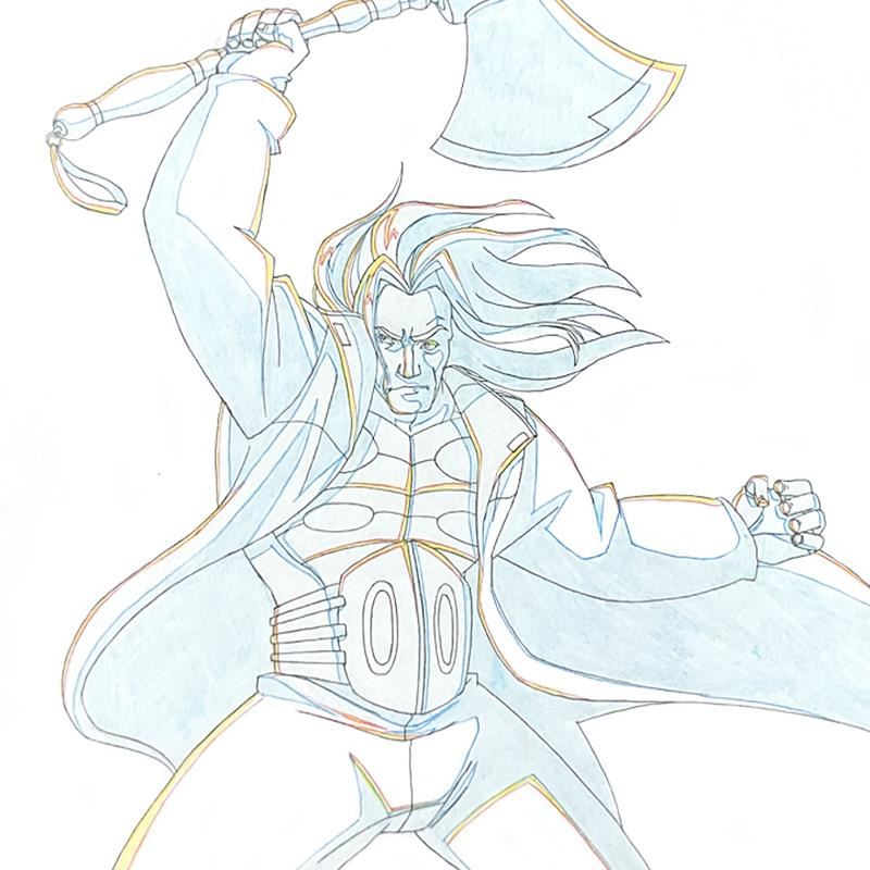 Thor by Marvel Comics Original. All available information is listed in the description and shown in the photo. "Thor" is an original production drawing on animation paper by Marvel Comics. Includes Letter of Authenticity. Measures approx. 14" x 10" (image).