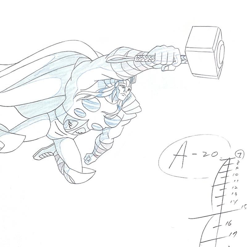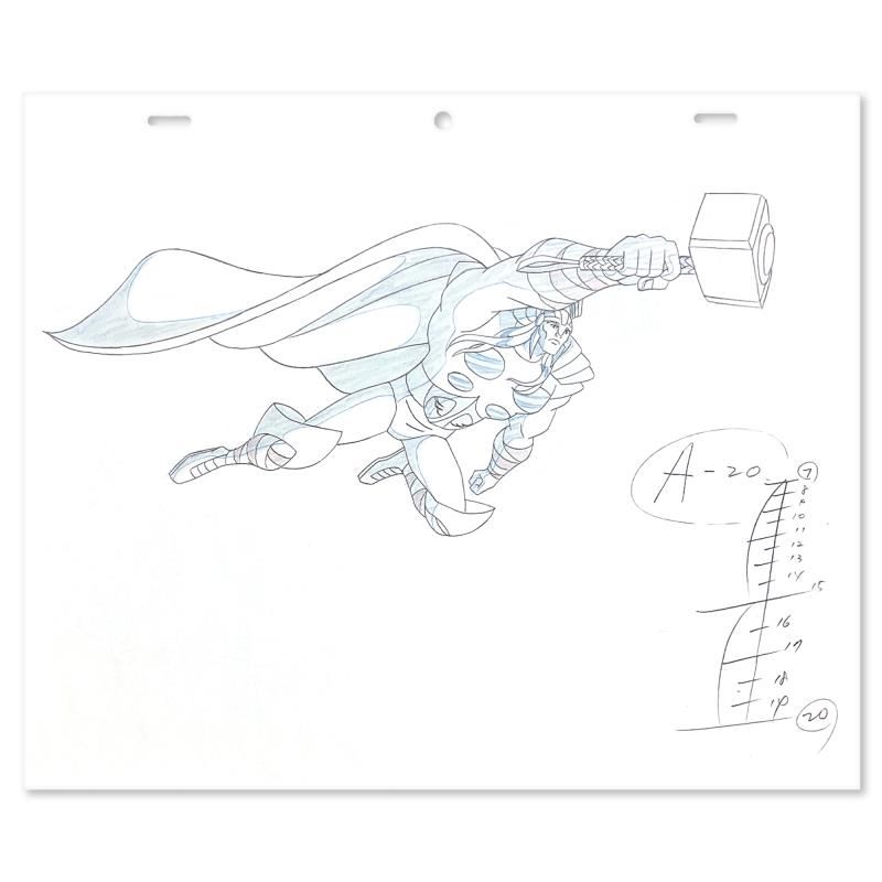 "Thor" is an original production drawing on animation paper by Marvel Comics. Includes Letter of Authenticity. Measures approx. 12.5" x 10.5" (image).