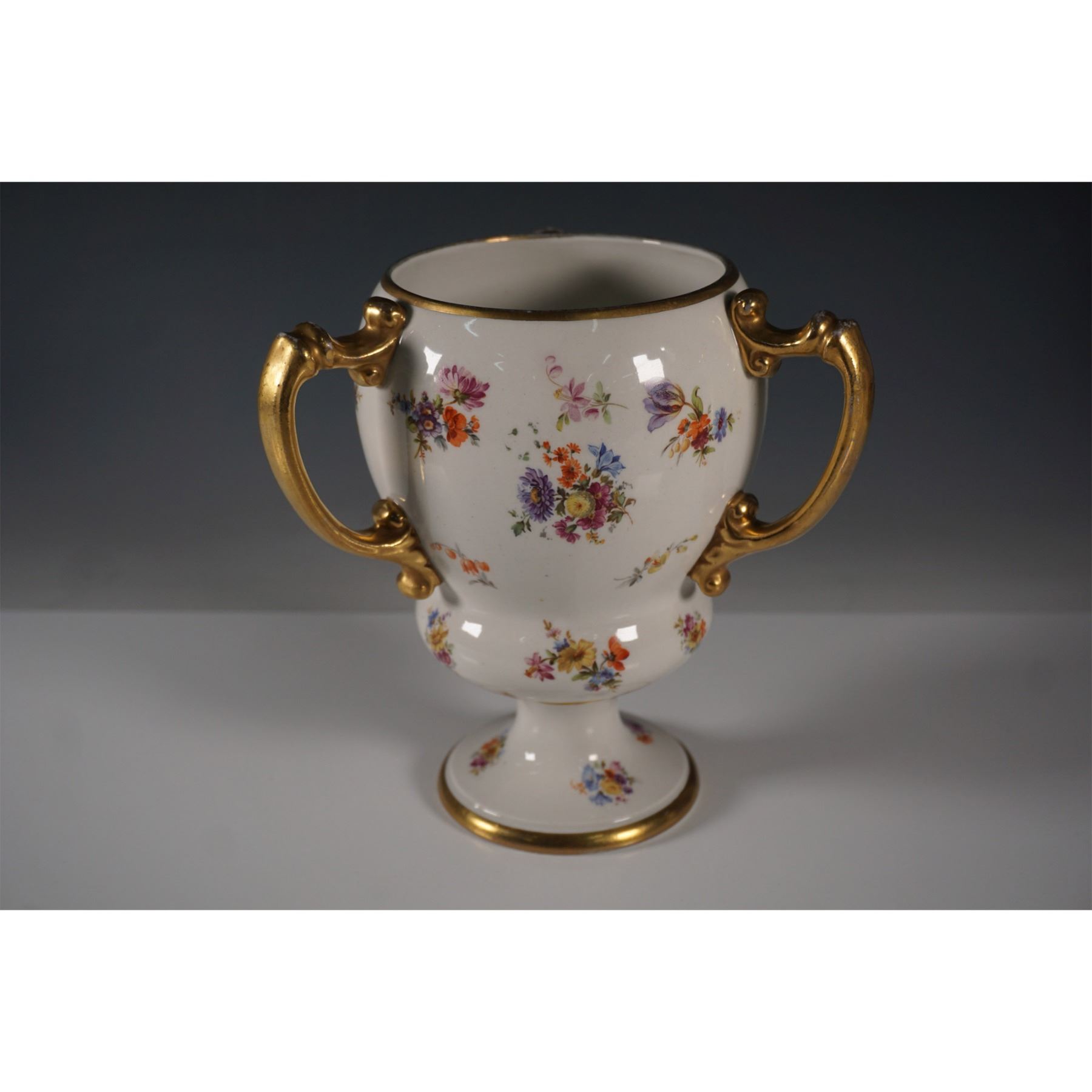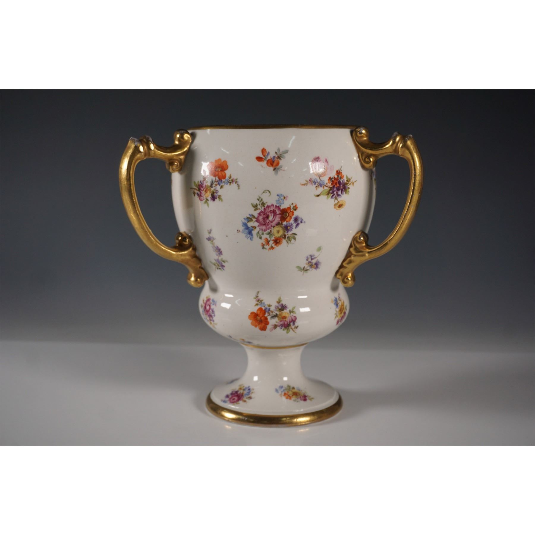 Thosmas Maddock & Sons Floral Porcelain Vase, Gold Handles