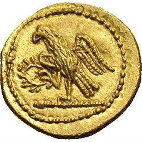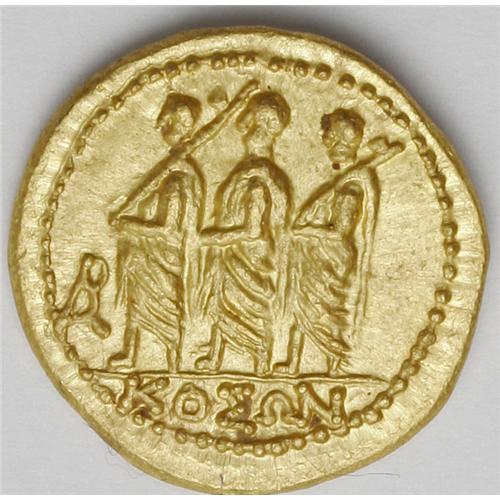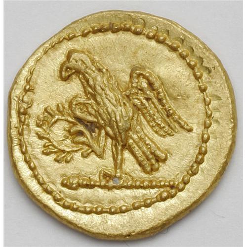 <B>Thracian Dynasts. Koson.</B></I> Ca. mid 1st century B.C. AV stater (21 mm, 8.43 g). Roman consul walking left, accompanied by two lictors; BR monogram to left / Eagle standing left on sceptre, holding wreath. RPC 1701; BMC p. 208, 2. XF.