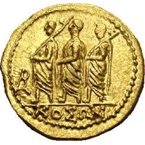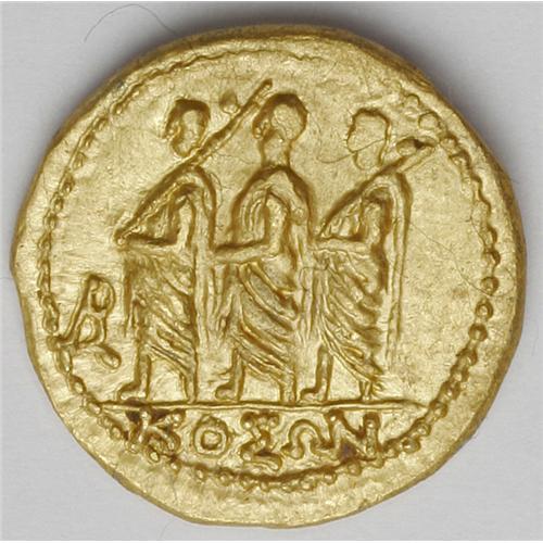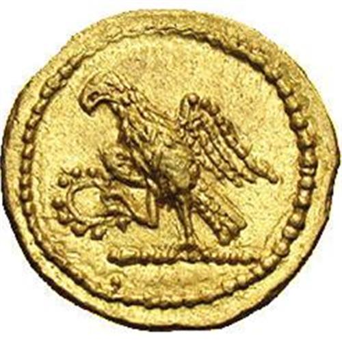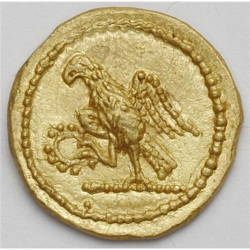 <B>Thracian Dynasts. Koson.</B></I> Ca. mid 1st century B.C. AV stater (20 mm, 8.46 g). Roman consul walking left, accompanied by two lictors; BR monogram to left / Eagle standing left on sceptre, holding wreath. RPC 1701; BMC p. 208, 2. XF.