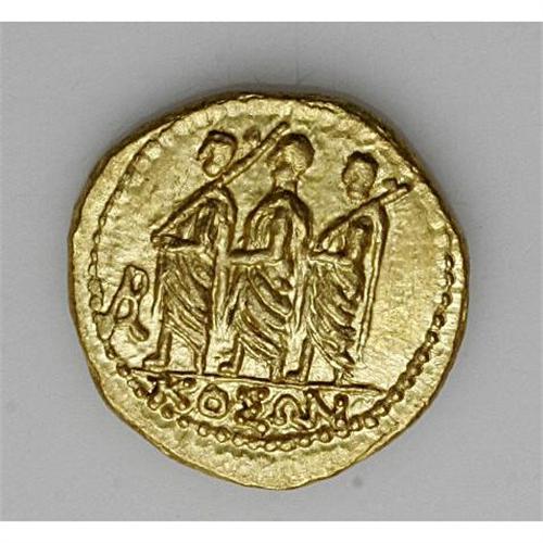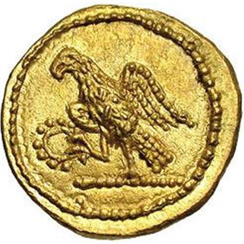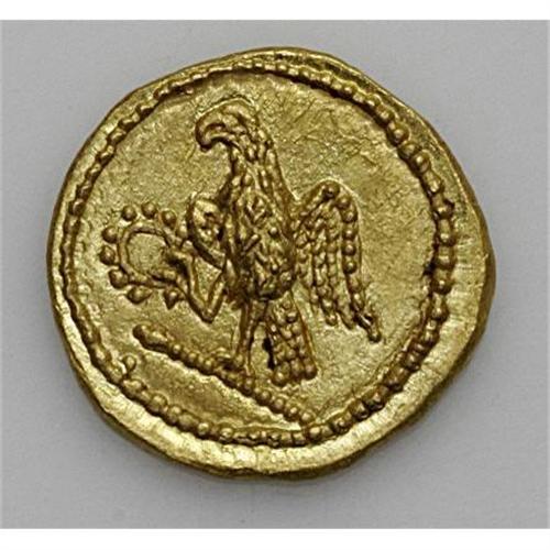 <B>Thracian Dynasts. Koson.</B></I> Ca. mid 1st century B.C. AV stater (20 mm, 8.39 g). Roman consul walking left, accompanied by two lictors; BR monogram to left / Eagle standing left on sceptre, holding wreath. RPC 1701; BMC Thrace p. 208, 2. XF.