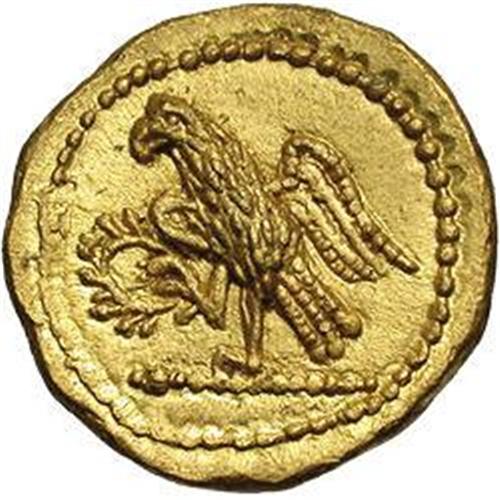 <B>Thracian Dynasts. Koson.</B></I> Ca. mid 1st century B.C. AV stater (20 mm, 8.37 g). Roman consul walking left, accompanied by two lictors; BR monogram to left / Eagle standing left on sceptre, holding wreath. RPC 1701; BMC Thrace p. 208, 2. XF.