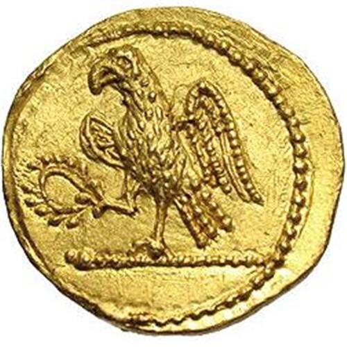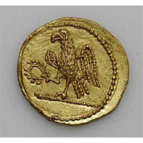 <B>Thracian Dynasts. Koson.</B></I> Ca. mid 1st century B.C. AV stater (21 mm, 8.37 g). Roman consul walking left, accompanied by two lictors; BR monogram to left / Eagle standing left on sceptre, holding wreath. RPC 1701; BMC Thrace p. 208, 2. XF.