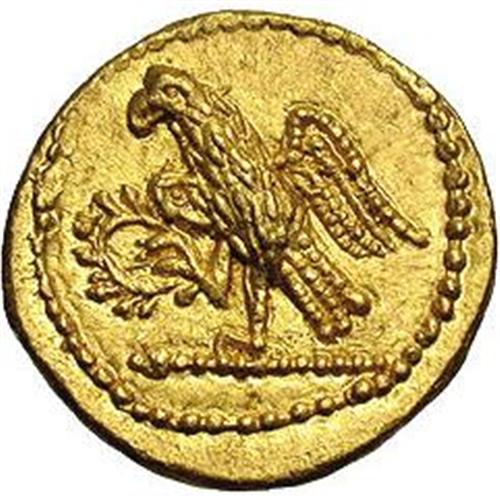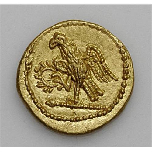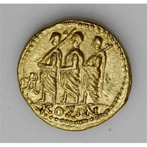 <B>Thracian Dynasts. Koson.</B></I> Ca. mid 1st century B.C. AV stater (20 mm, 8.41 g). Roman consul walking left, accompanied by two lictors; BR monogram to left / Eagle standing left on sceptre, holding wreath. RPC 1701; BMC Thrace p. 208, 2. XF.