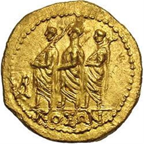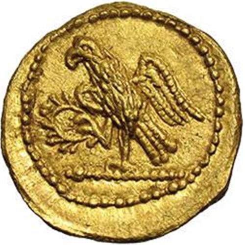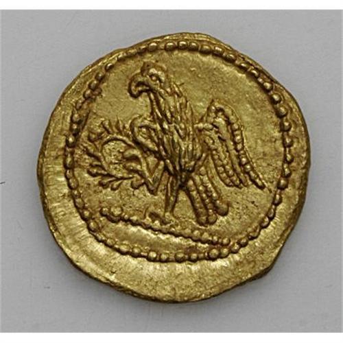 <B>Thracian Dynasts. Koson.</B></I> Ca. mid 1st century B.C. AV stater (21 mm, 8.42 g). Roman consul walking left, accompanied by two lictors; BR monogram to left / Eagle standing left on sceptre, holding wreath. RPC 1701; BMC Thrace p. 208, 2. XF.