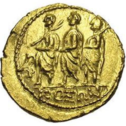 <B>Thracian Dynasts. Koson.</B></I> Ca. mid 1st century B.C. AV stater (20 mm, 8.49 g). Roman consul walking left, accompanied by two lictors; BR monogram to left / Eagle standing left on sceptre, holding wreath. RPC 1701; BMC Thrace p. 208, 2. Good VF, edge dings.