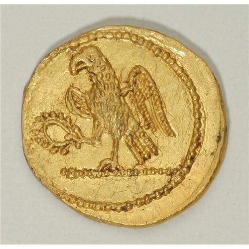 <B>Thracian Dynasts. Koson.</B></I> Ca. mid 1st century B.C. AV stater (21 mm, 8.37 g). Roman consul walking left, accompanied by two lictors; BR monogram to left / Eagle standing left on sceptre, holding wreath. RPC 1701; BMC Thrace p. 208, 2. <B>XF.</B></I><BR><BR><b>Shipping:</b> Coin/Currency (<a target="_blank" href="http://www.heritageauctions.com/common/shipping.php">view shipping information</a>)
