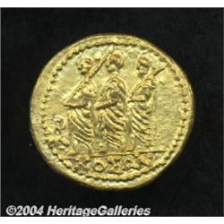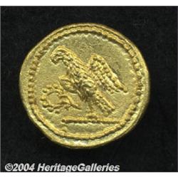 <B>Thracian Dynasts. Koson.</B></I> Ca. mid 1st century B.C. AV stater (20 mm, 8.39 g). Roman consul walking left, accompanied by two lictors; BR monogram to left / Eagle standing left on sceptre, holding wreath. RPC 1701; BMC Thrace p. 208, 2. Superb XF. <BR><BR><B>Important notice:</B> Heritage usually auctions material at the rate of 200-250 lots per hour. On some occasions eBay Live bid software or the Internet may not be able to keep up with the pace of the auction. We recommend placing a realistic absentee bid now as insurance to avoid disappointment. Occasionally the auctioneer may eliminate or reject an eBay Live bid, and the auctioneer may also reopen a lot after the close of the eBay live bidding (usually because we missed an audience bid), and may reject your bid even if it shows you as the winning bidder. By bidding via eBay Live, you agree that Heritage may award the lot to another bidder at its sole discretion under the circumstances described above or any other reasonable circumstances. Since eBay bids are not shown to us until we open the lot on the floor, we treat those bids just like floor bids. In most cases the floor responds before the eBay bid is presented to us, due to Internet lag time, so for consistency we have made it a policy that floor bids are always considered first over tie eBay live bids. Also please note that all Heritage lots purchased through eBay Live carry a 20% Buyer's Premium. Please make sure you read the Terms and Conditions before you bid.