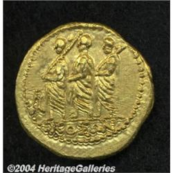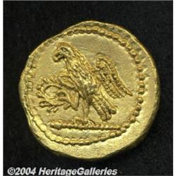 <B>Thracian Dynasts. Koson.</B></I> Ca. mid 1st century B.C. AV stater (20 mm, 8.35 g). Roman consul walking left, accompanied by two lictors; BR monogram to left / Eagle standing left on sceptre, holding wreath. RPC 1701; BMC Thrace p. 208, 2. Superb XF. <BR><BR><B>Important notice:</B> Heritage usually auctions material at the rate of 200-250 lots per hour. On some occasions eBay Live bid software or the Internet may not be able to keep up with the pace of the auction. We recommend placing a realistic absentee bid now as insurance to avoid disappointment. Occasionally the auctioneer may eliminate or reject an eBay Live bid, and the auctioneer may also reopen a lot after the close of the eBay live bidding (usually because we missed an audience bid), and may reject your bid even if it shows you as the winning bidder. By bidding via eBay Live, you agree that Heritage may award the lot to another bidder at its sole discretion under the circumstances described above or any other reasonable circumstances. Since eBay bids are not shown to us until we open the lot on the floor, we treat those bids just like floor bids. In most cases the floor responds before the eBay bid is presented to us, due to Internet lag time, so for consistency we have made it a policy that floor bids are always considered first over tie eBay live bids. Also please note that all Heritage lots purchased through eBay Live carry a 20% Buyer's Premium. Please make sure you read the Terms and Conditions before you bid.
