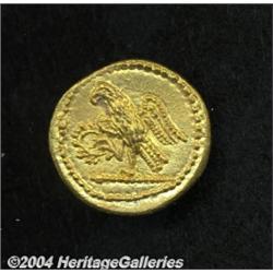 <B>Thracian Dynasts. Koson.</B></I> Ca. mid 1st century B.C. AV stater (20 mm, 8.29 g). Roman consul walking left, accompanied by two lictors; BR monogram to left / Eagle standing left on sceptre, holding wreath. RPC 1701; BMC Thrace p. 208, 2. Superb XF. <BR><BR><B>Important notice:</B> Heritage usually auctions material at the rate of 200-250 lots per hour. On some occasions eBay Live bid software or the Internet may not be able to keep up with the pace of the auction. We recommend placing a realistic absentee bid now as insurance to avoid disappointment. Occasionally the auctioneer may eliminate or reject an eBay Live bid, and the auctioneer may also reopen a lot after the close of the eBay live bidding (usually because we missed an audience bid), and may reject your bid even if it shows you as the winning bidder. By bidding via eBay Live, you agree that Heritage may award the lot to another bidder at its sole discretion under the circumstances described above or any other reasonable circumstances. Since eBay bids are not shown to us until we open the lot on the floor, we treat those bids just like floor bids. In most cases the floor responds before the eBay bid is presented to us, due to Internet lag time, so for consistency we have made it a policy that floor bids are always considered first over tie eBay live bids. Also please note that all Heritage lots purchased through eBay Live carry a 20% Buyer's Premium. Please make sure you read the Terms and Conditions before you bid.