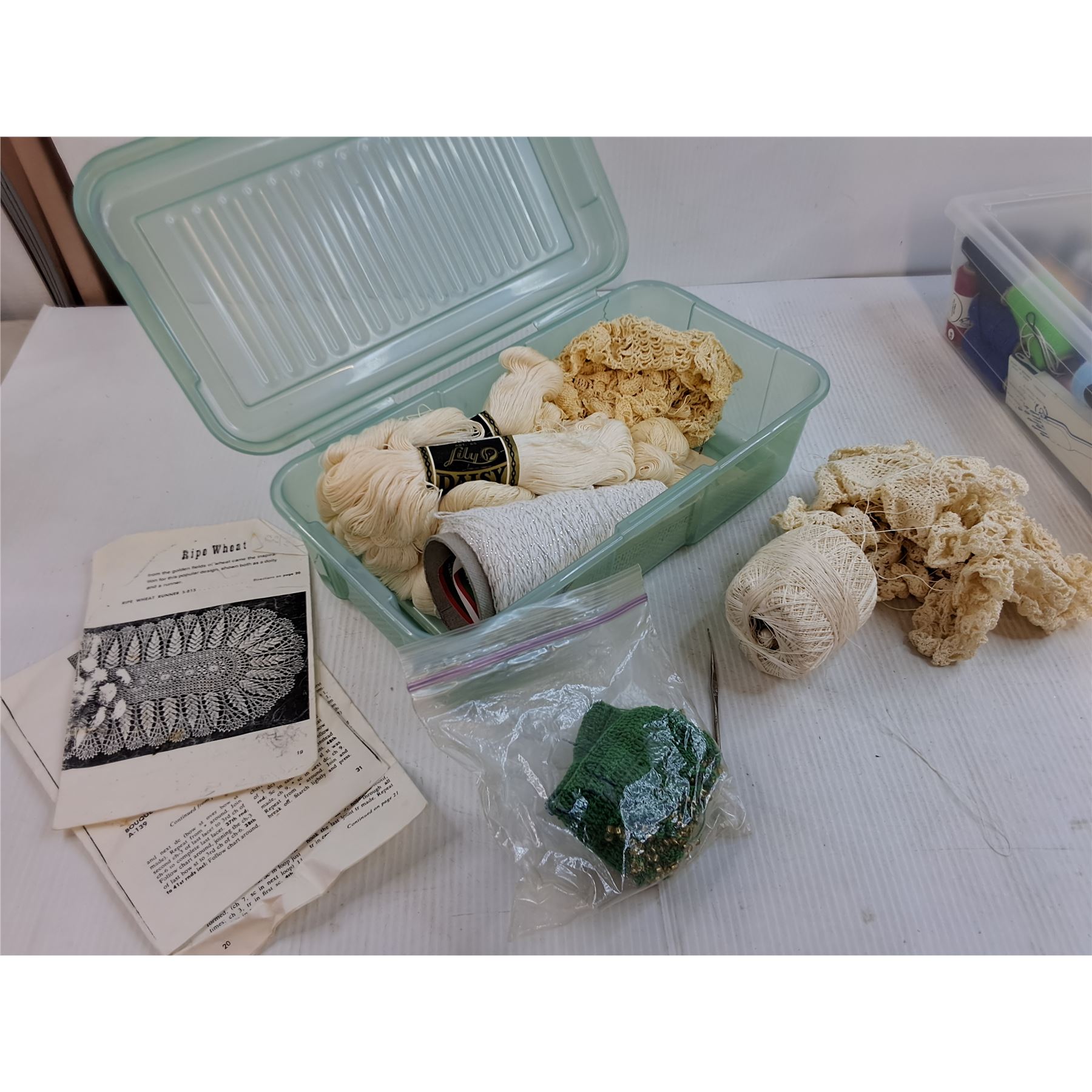 Thread, Crochet, Doily Lot - Doily Patterns, Doilies, Colored Thread, Hooks - AS IS