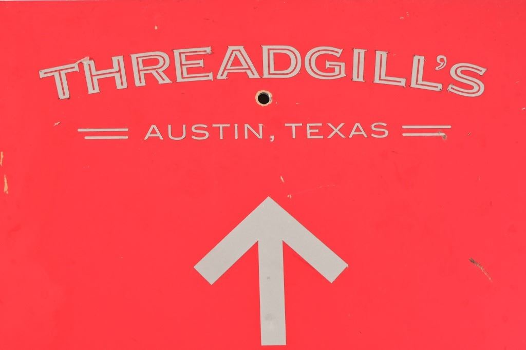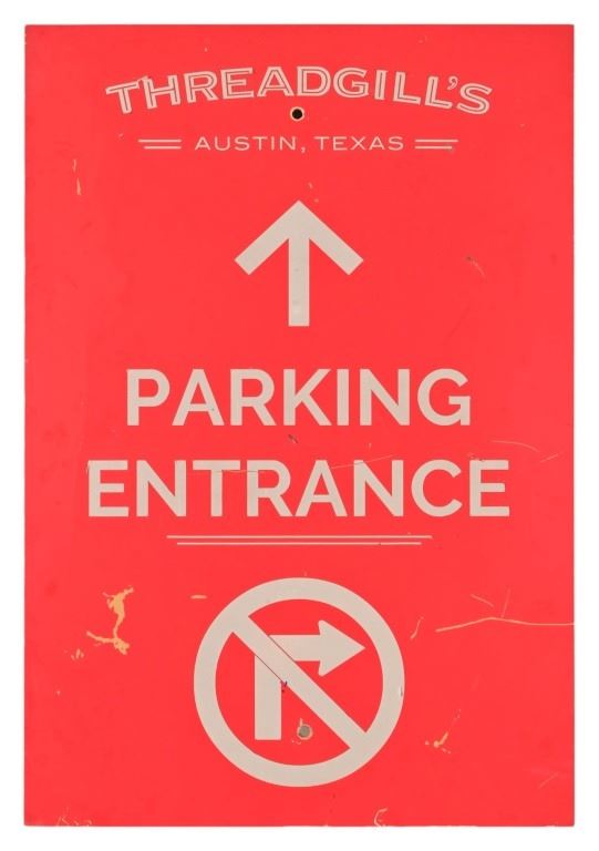 Aluminum directional sign into the parking lot of Threadgill's. 17x25
