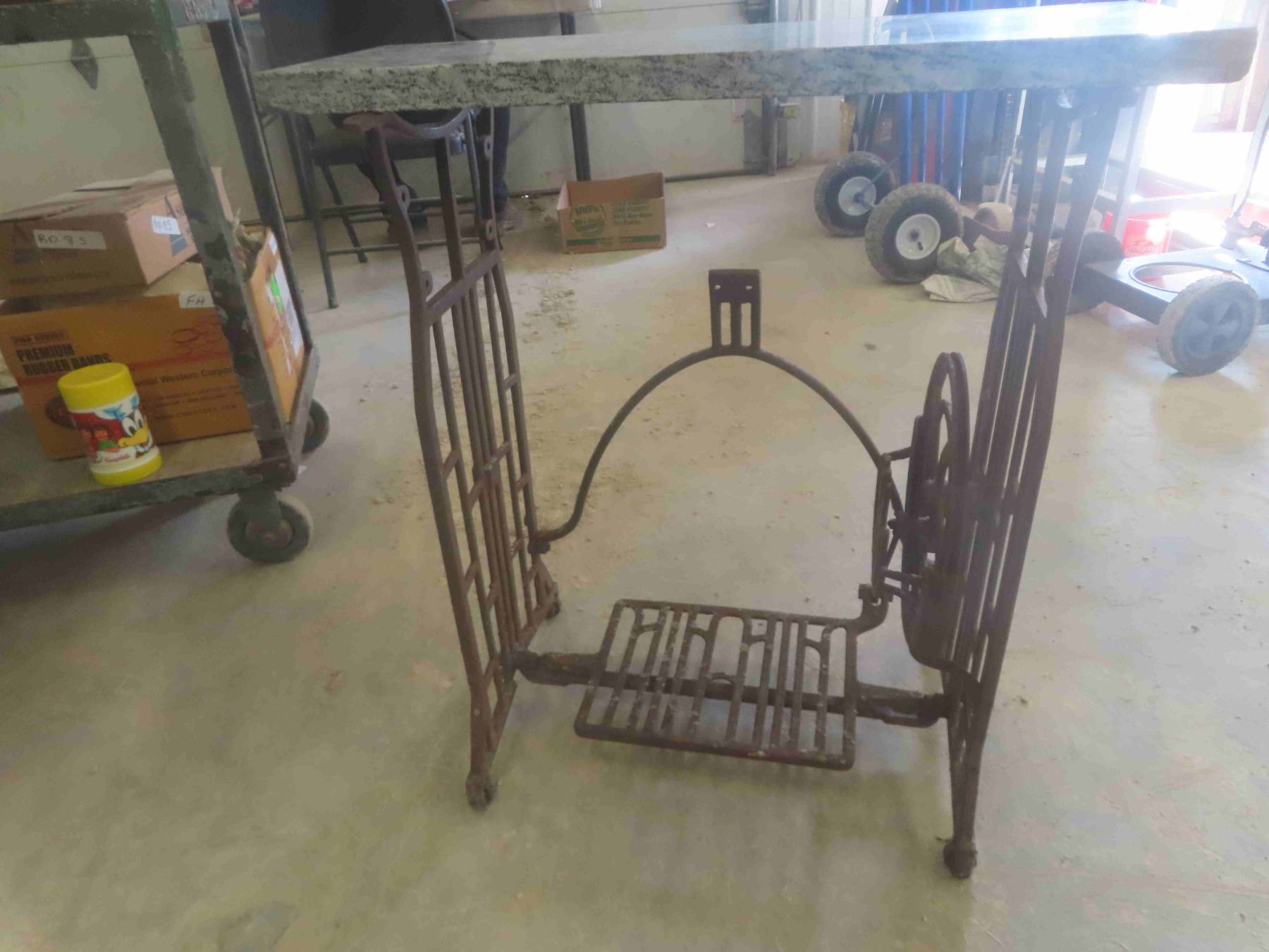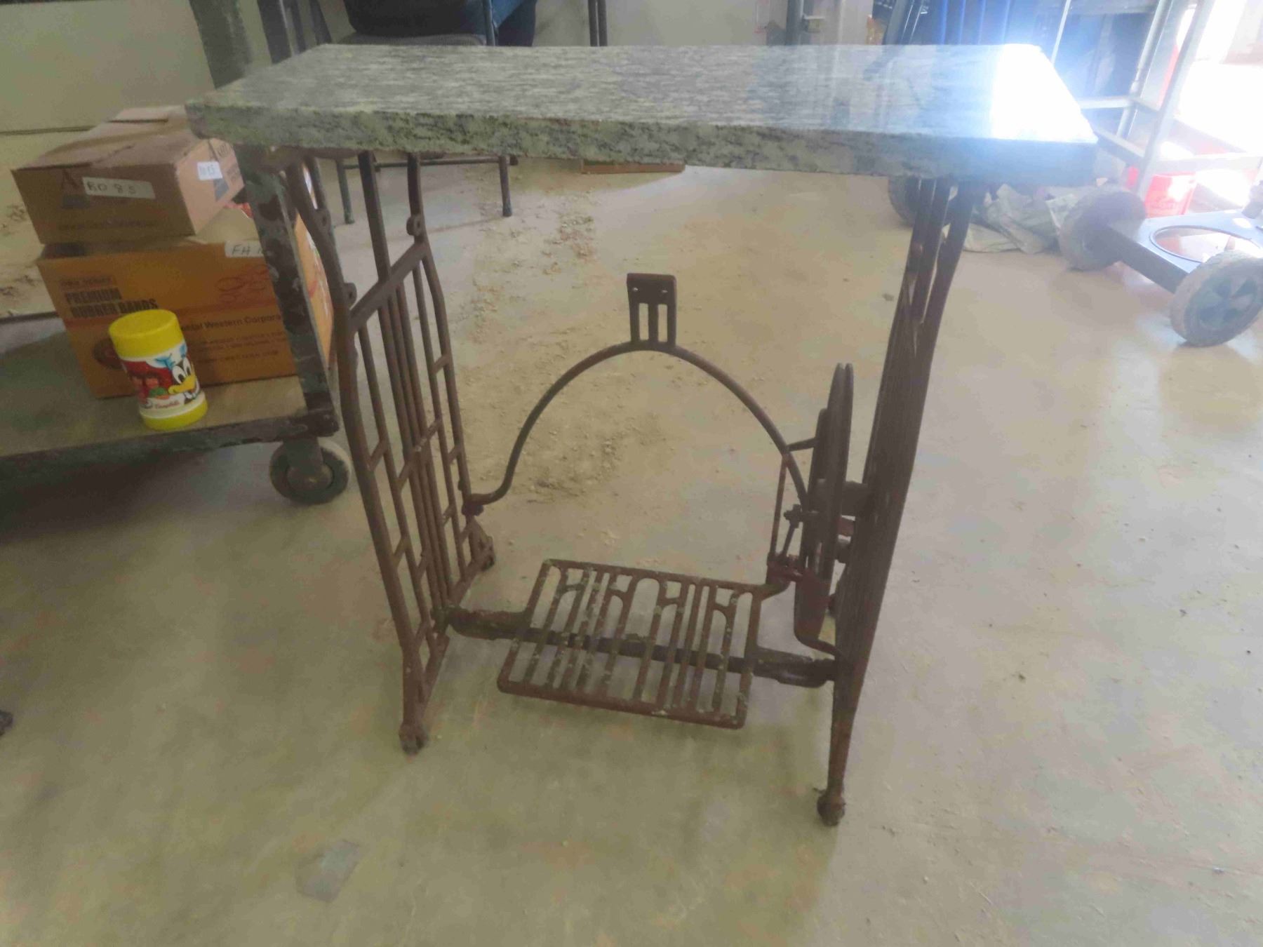 Threadle Base Repurposed into Side Table w/Granite Top.Base 14 1/2 x 20 1/2 x 28" H Top 26 1/4 x 12