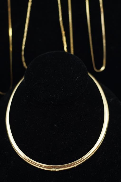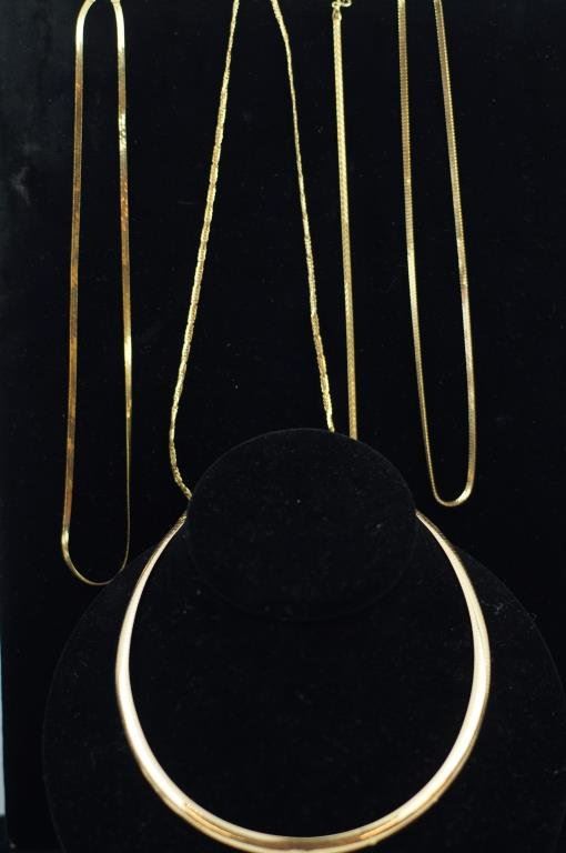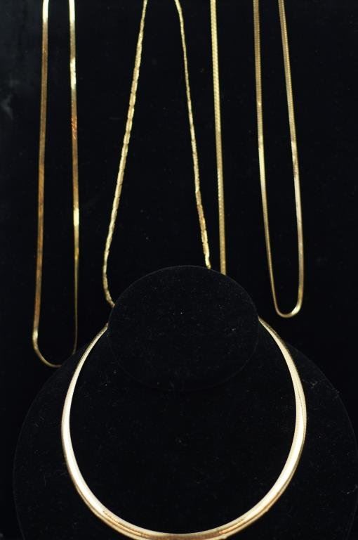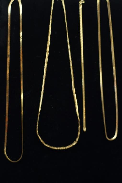 3 necklaces and one bracelet all 14 kt gold - app 33 gms