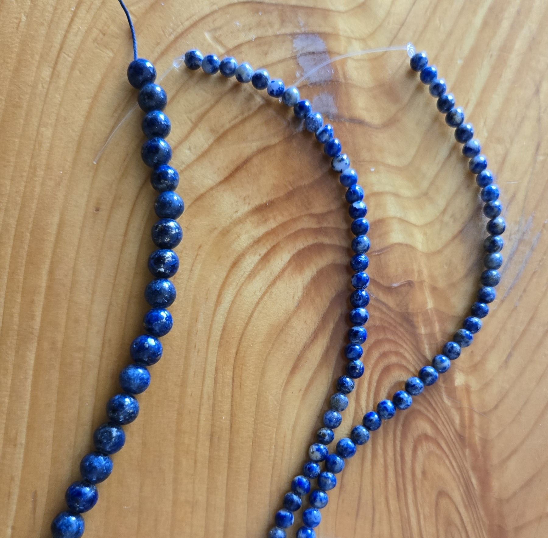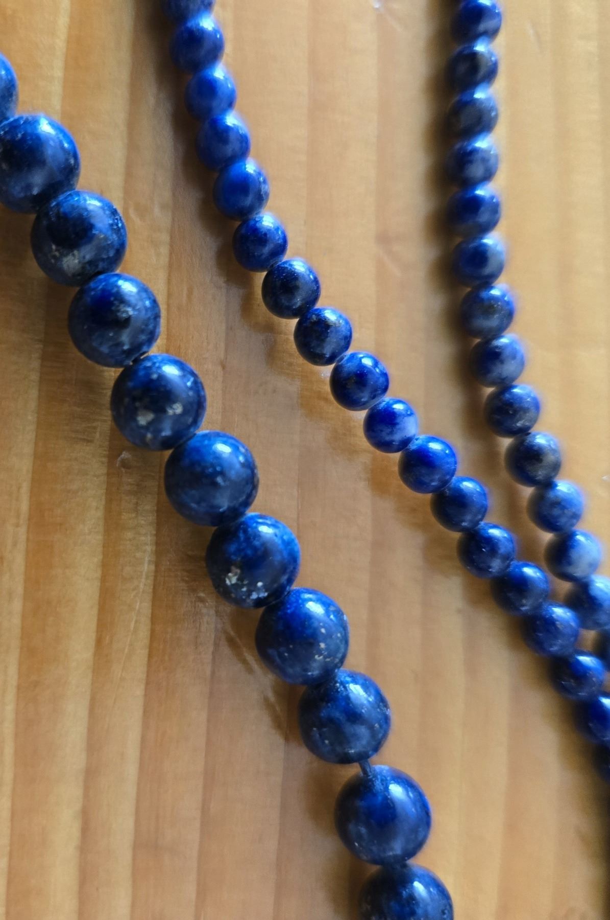 Three 16” Strands of Lapis Lazuli Antique Trade Beads. One strand has beads that measure 6 mm in diameter and the other two strands have beads that measure approximately 5 mm in diameter.