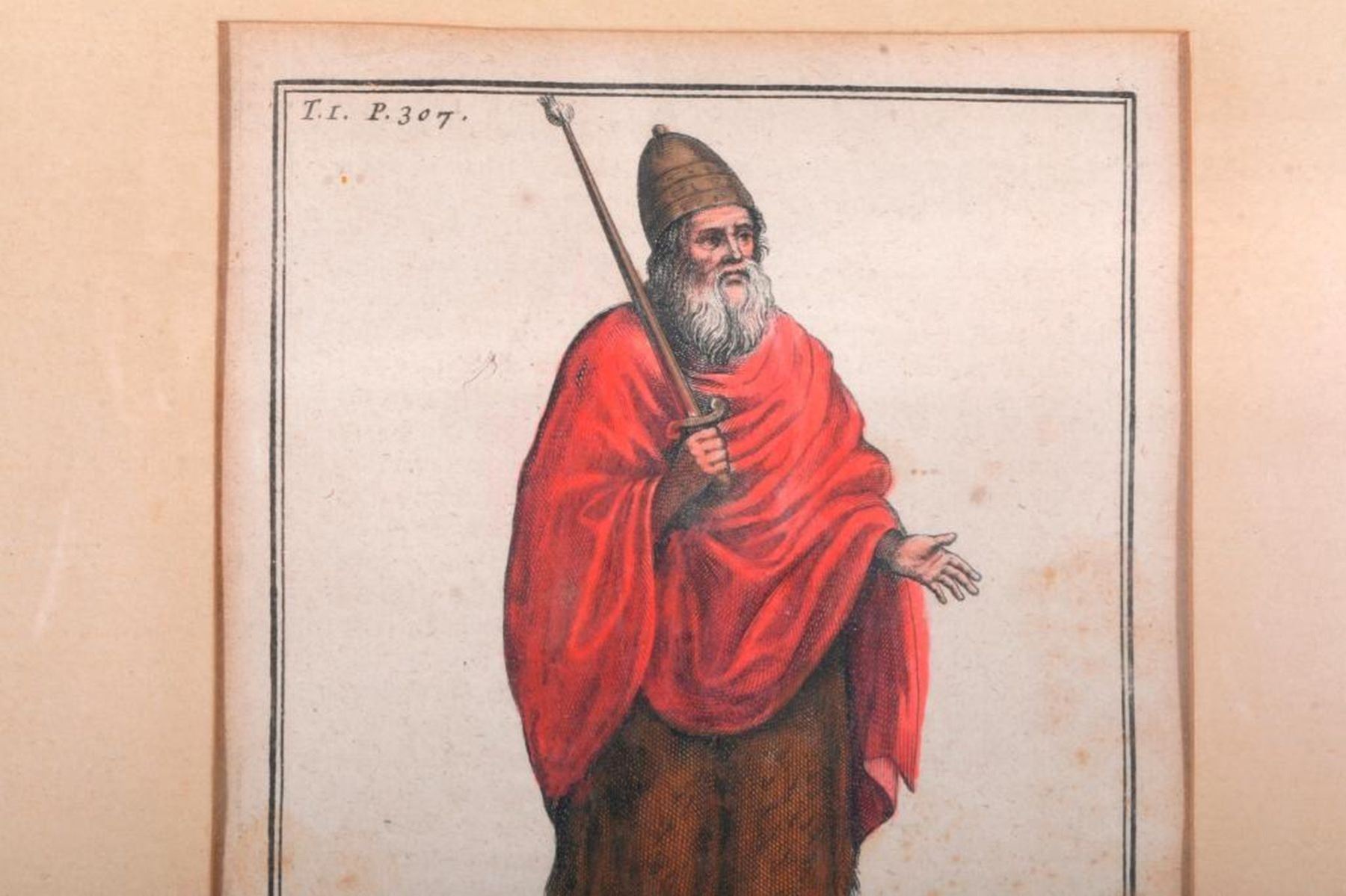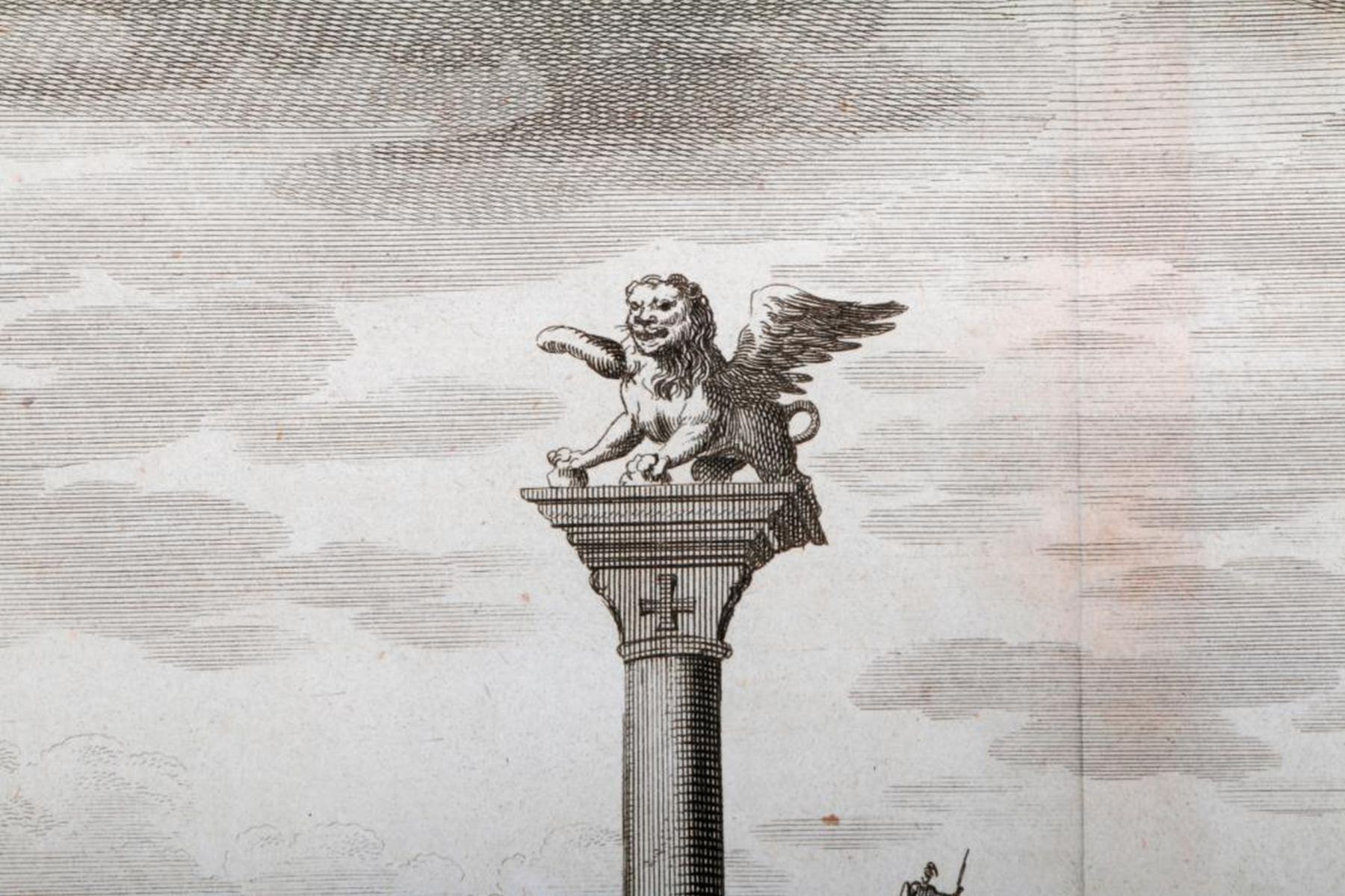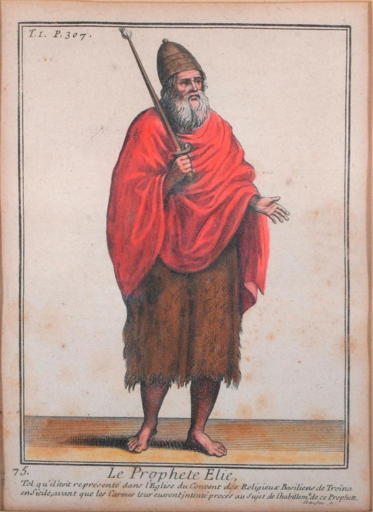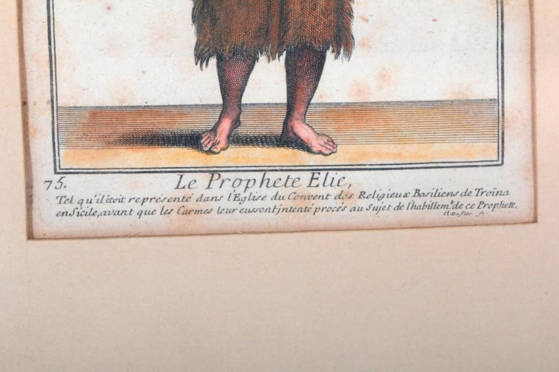 An unsigned 18th century etching of Venice measuring 16 inches high x 17 wide. A 17th/18th century etching of the Colosseum signed Carolus Fontana and measuring 19 1/2 inches high x 13. A framed 18th century hand colored etching to the prophet Elie. Size image -8 inches high x 5 1/2. Size Frame - 16 inches high x 12. Condition: Good.