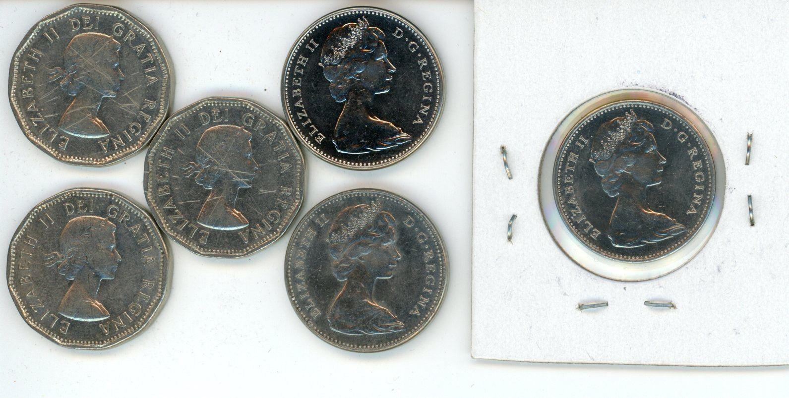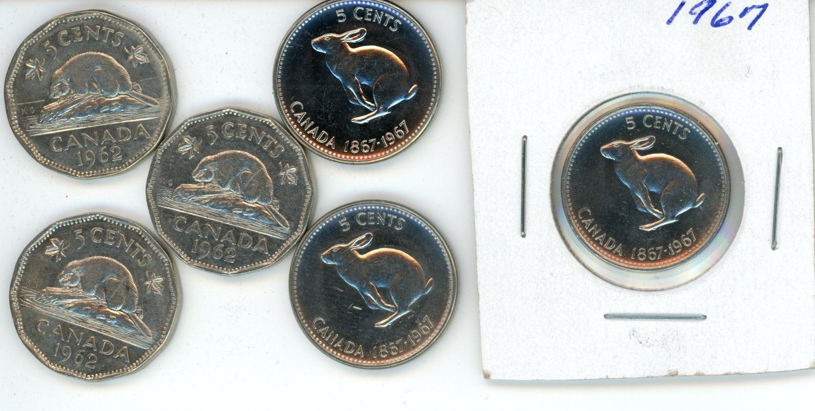 Three 1962 and Three Commemorative 1867-1967 Canadian 5 Cent Coins