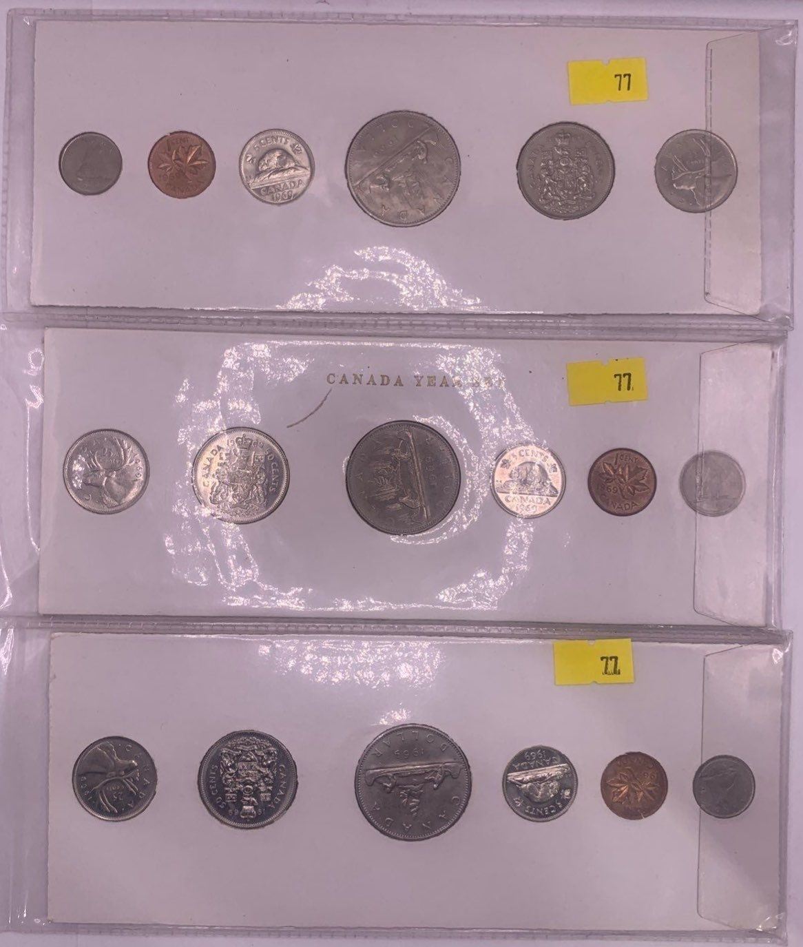 Three 1969 Canadian 6 Coin Sets