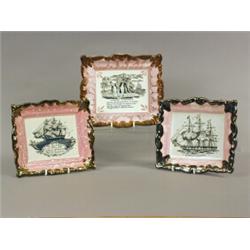 edges, with printed centres; 'A sailors farewell', and two pictorial maritime themes, Agamemnon and 'May Peace and Plenty', 21.5cm wide