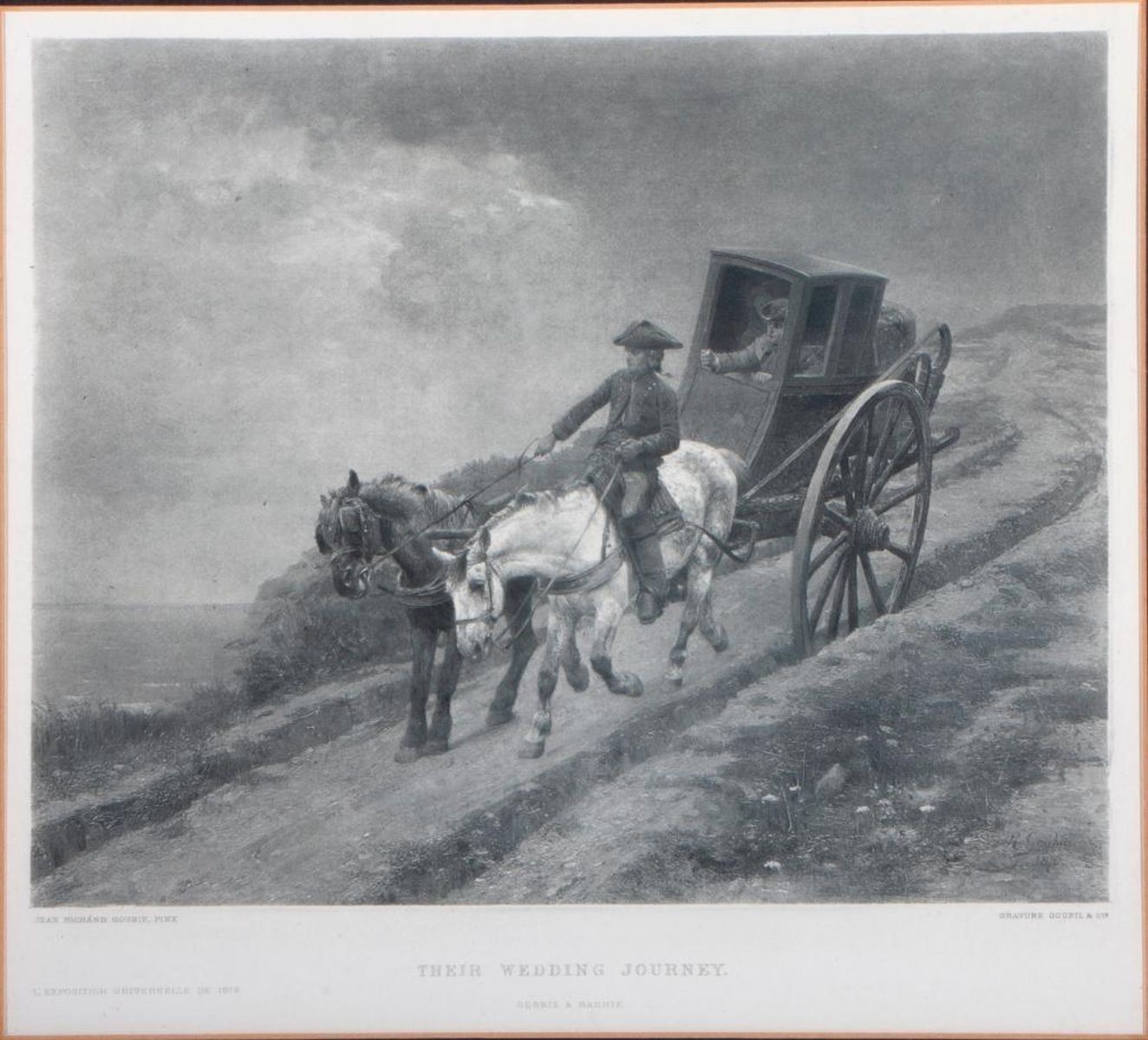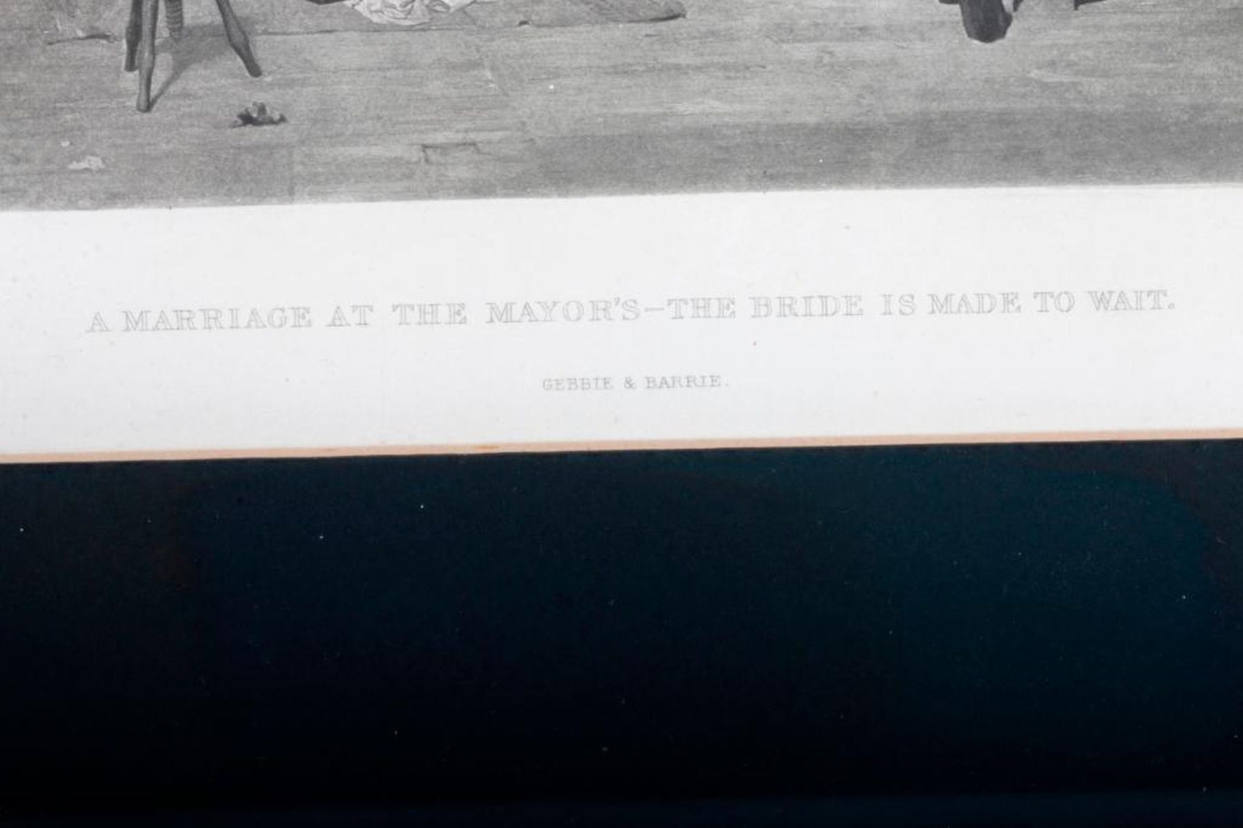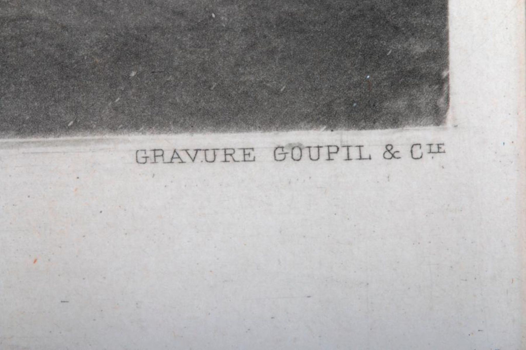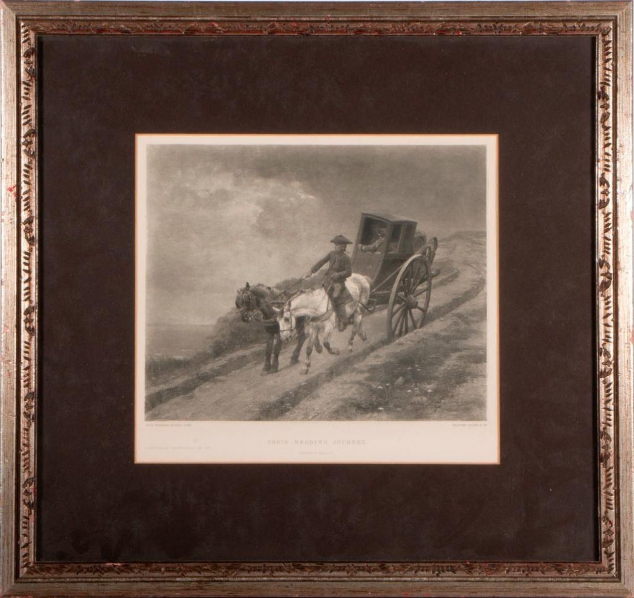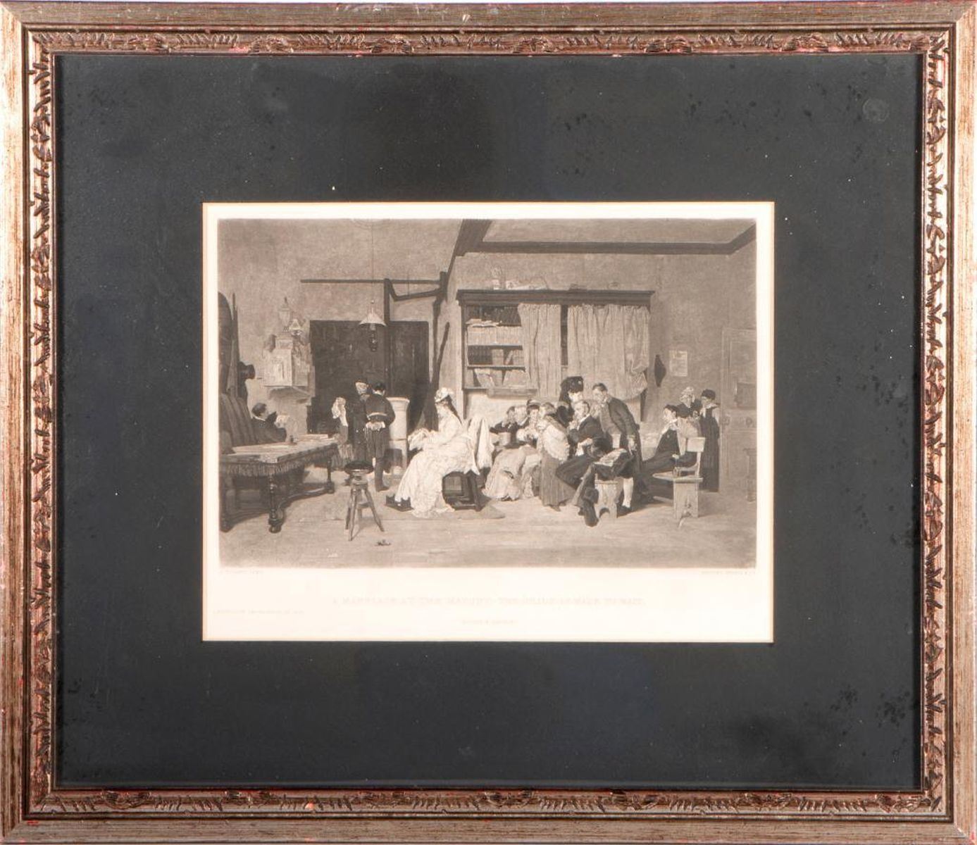 Three 19th century English etchings. Image size: 9 and 8 inches high x 10. Frame size: 16 1/2 inches high x 17 1/2.