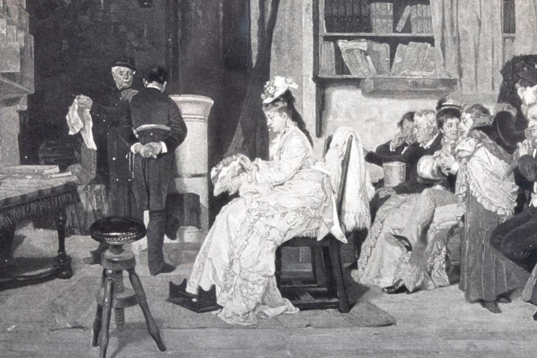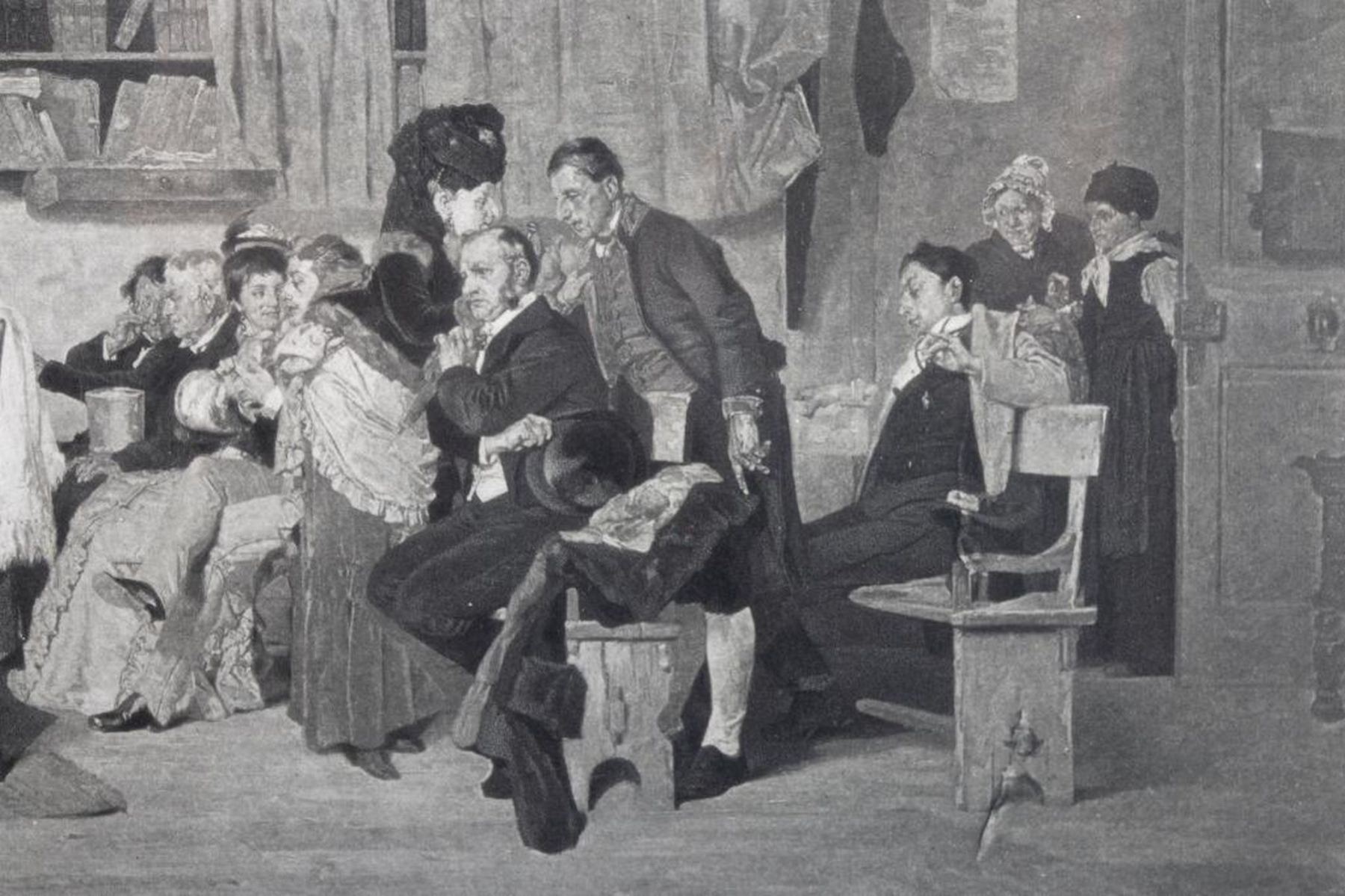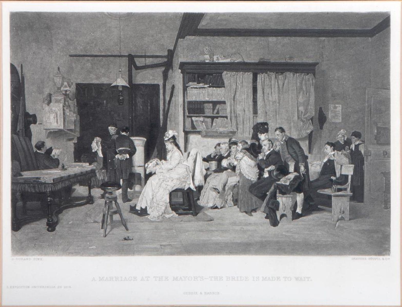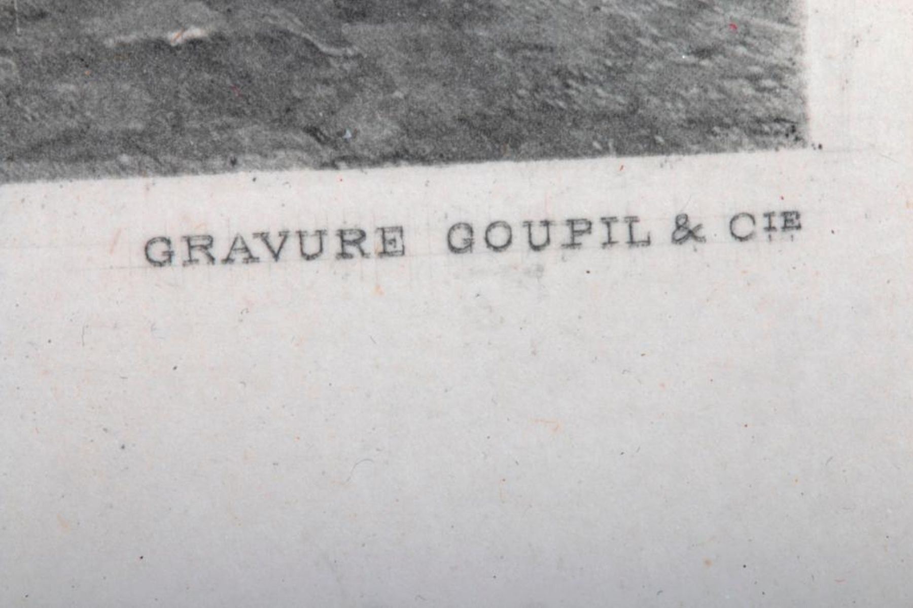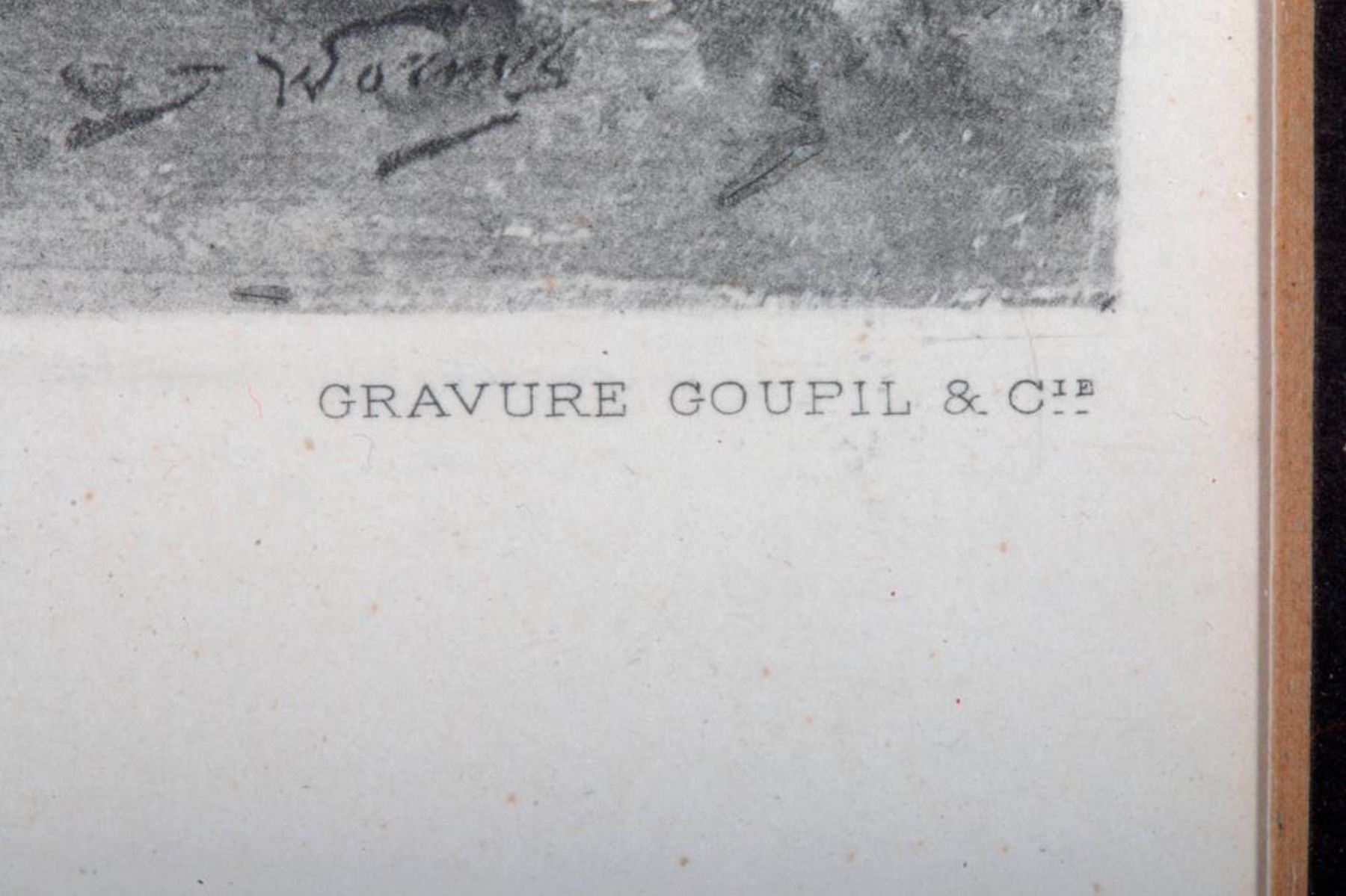 Three 19th century English etchings. Image size: 9 and 8 inches high x 10. Frame size: 16 1/2 inches high x 17 1/2.