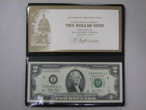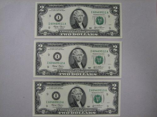Three 2003 Uncirculated Two Dollar Bill in protective case with certificate of authenticity, Consecutive serial numbers. Condition: Mint.