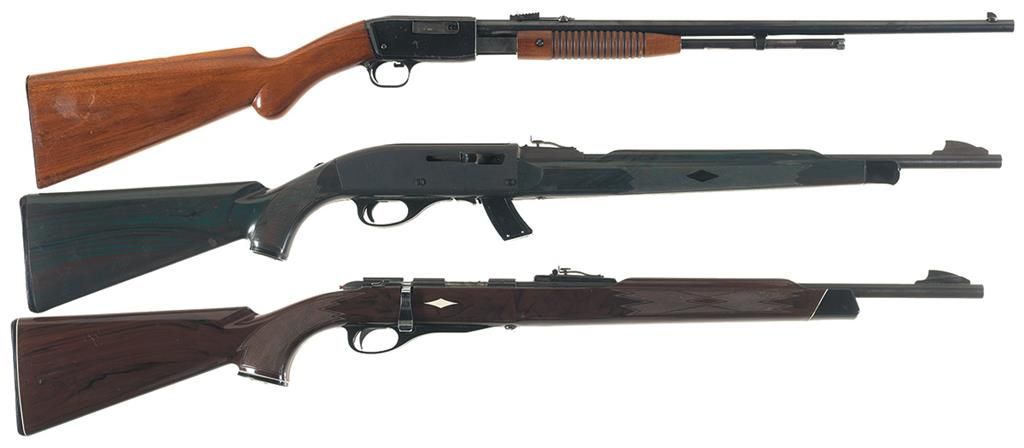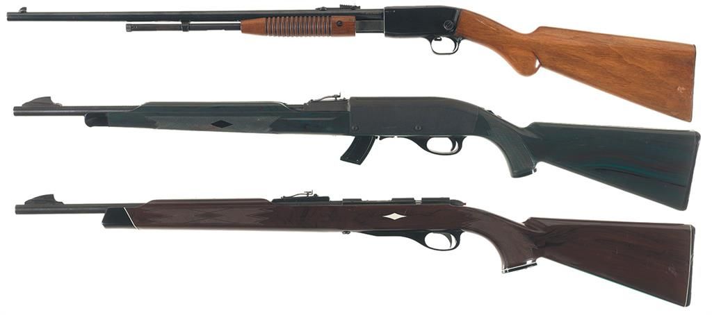 Three 22 Caliber Rifles -A) Fabrique Nationale "Trombone" Slide Action Rifle