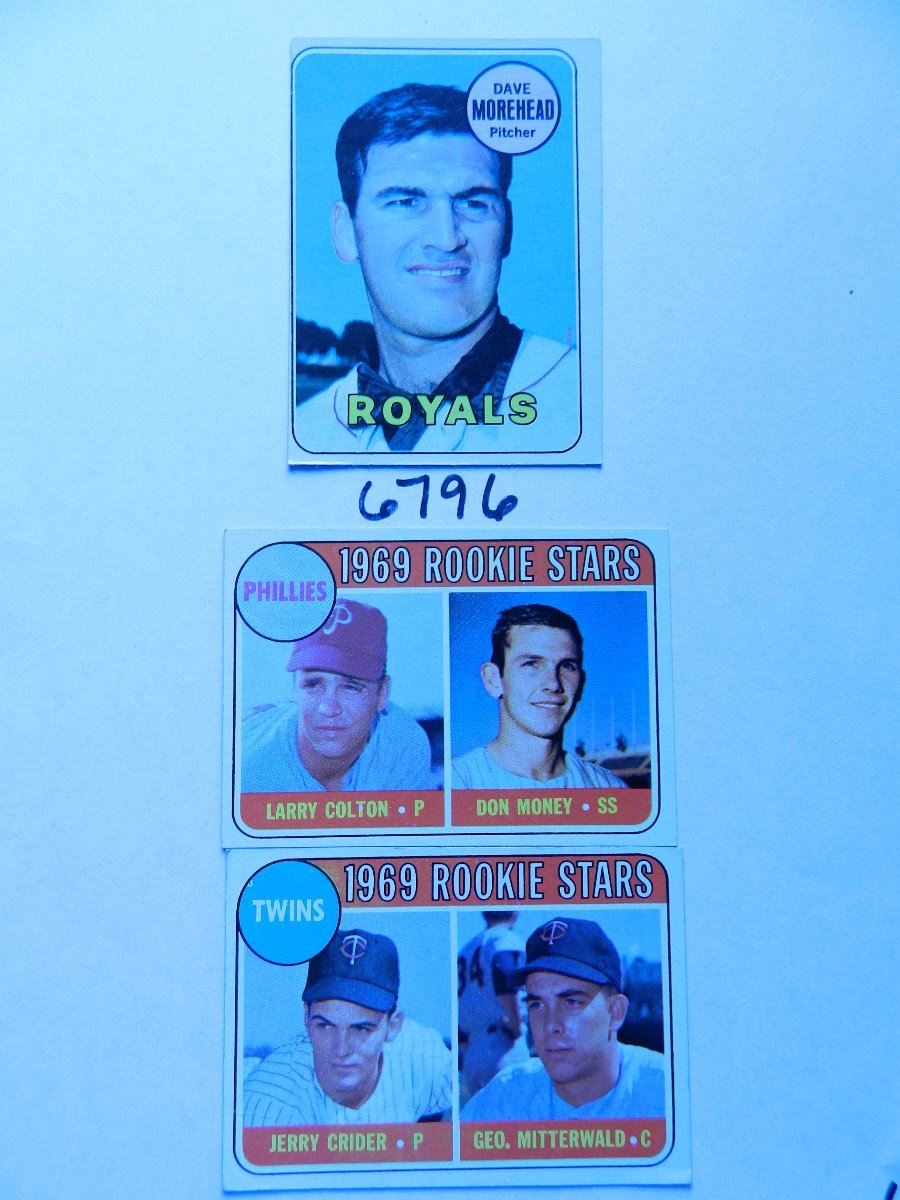 Three (3) 1969 Topps Baseball Cards. 2 Rookie Stars Cards & #29 Dave Morehead, All Three for One $